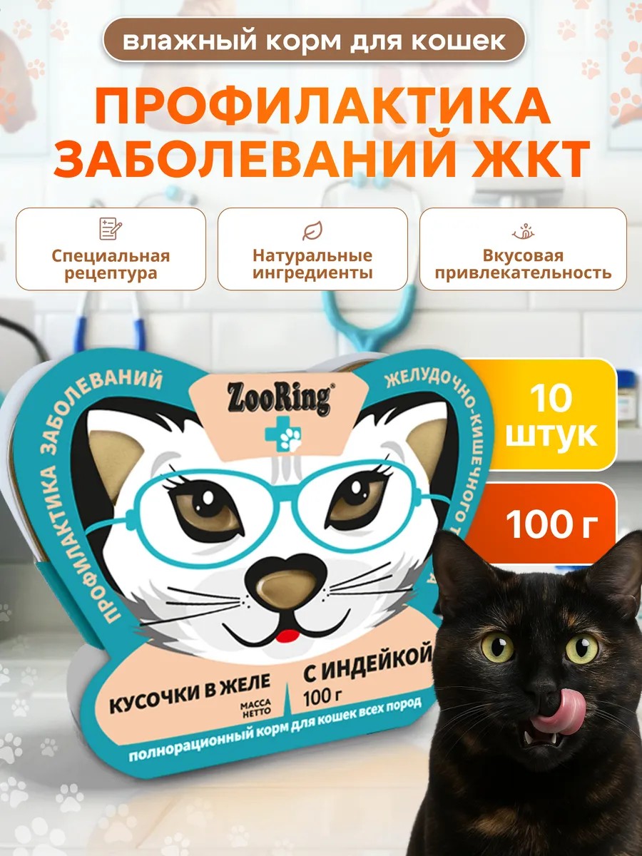 Полнорационный консервированный корм ZooRing кусочки в желе создан специально для котов, которым важна забота о ЖКТ. Эта специальная рецептура разработана с учетом потребностей привередливых питомцев, обеспечивая высокое содержание мяса и натуральные ингредиенты высочайшего качества. Благодаря вкусовой привлекательности продукт станет любимым лакомством даже для самых требовательных кошек.