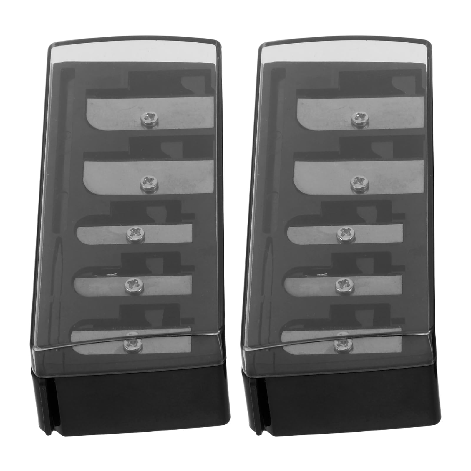 Taille-crayon de Maquillage Manuel 5 Trous Noir avec Couvercle, Lot de 2 pour Crayons à Sourcils, Lèvres et Eye-liner, Précision Professionnelle, Compact Voyage