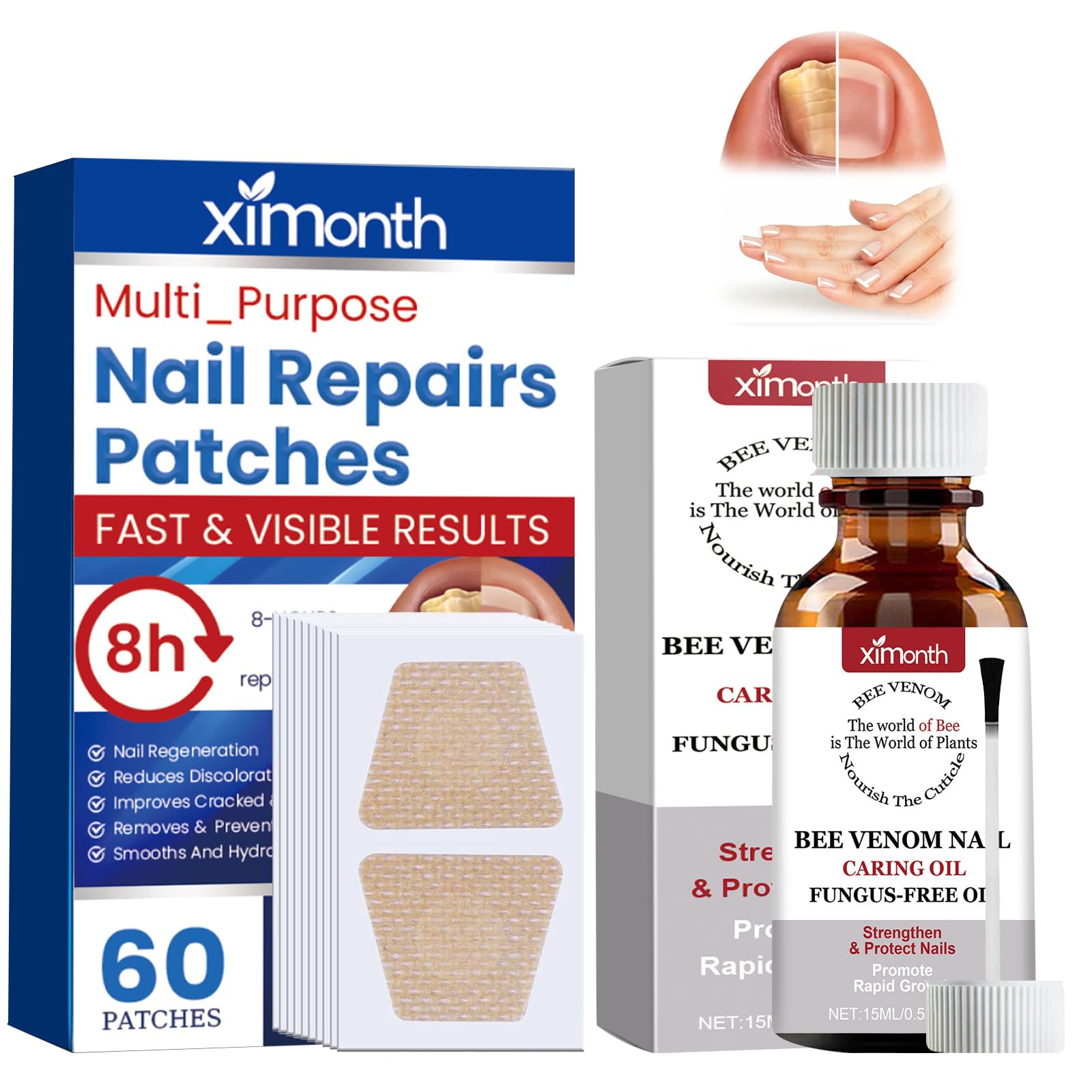 60 pieces nail digging repair patches, 15 ml nail soft foot nails, split nail repair, strengthening nails, nail digging, repair patches for damaged nails and the appearance of discolored nails SAFETY WARNING noneWidely used: This nail sticker set not only helps to improve the appearance of the nails, but also corrects the toenails and prevents them from bending again. Always ready to use, whether for travel or home use. Easy to use: Clean the inside and outside of the toenails, apply nail polish to completely absorb it, wait for it to dry completely, and then apply the nail sticker to completely cover the toes or fingers, which lasts 6-8 hours. Perfect Fit: The bottom of the nail sticker is firmly glued, fits the foot, provides waterproof protection and has good breathability. Say goodbye to boring nail care procedures and enjoy worry-free nail preparations with our nail stickers. Ingredient Safety Don't worry about allergies, all the ingredients of toenail plate come from nature, green and healthy. Nail polish can quickly and gently soften keratin, prevent cracking and protect nails and give you healthy nails. Nail sticker set: contains 60 toenail correction patches and 1 bottle of 15 ml nail care oil. Helps to beautify the appearance of the nails and make them look healthier.60 stuks nagelgraven reparatiepleisters, 15 ml nagelzachte voetnagels, splijtnagelreparatie, verstevigende nagels, nagelgraven, reparatiepleisters voor beschadigde nagels en het uiterlijk van 60 stuks nagelgraven reparatiepleisters, 15 ml nagelzachte voetnagels, splijtnagelreparatie, verstevigende nagels, nagelgraven, reparatiepleisters voor beschadigde nagels en het uiterlijk van verkleurde nagels VEILIGHEIDSWAARSCHUWING geenVeel gebruikt: deze nagelstickerset helpt niet alleen om het uiterlijk van de nagels te verbeteren, maar corrigeert ook de teennagels en voorkomt dat ze weer buigen. Altijd klaar voor gebruik, zowel voor op reis als voor thuisgebruik. Eenvoudig te bedienen: reinig de binnen- en buitenkant van de teennagels, breng nagellak aan om hem volledig te absorberen, wacht tot hij volledig droogt en breng vervolgens de nagelsticker aan om de tenen of vingers volledig te bedekken, die 6-8 uur meegaat. Perfecte pasvorm: de onderkant van de nagelsticker is stevig gelijmd, past bij de voet, biedt waterdichte bescherming en heeft een goed ademend vermogen. Zeg afscheid van saaie nagelverzorgingsprocedures en geniet van zorgeloze nagelpreparaties met onze nagelstickers. Ingrediëntenveiligheid Maak je geen zorgen over allergieën, alle ingrediënten van de teennagelplaat komen uit de natuur, groen en gezond. Nagellak kan snel en zacht keratine zacht, scheuren voorkomen en nagels beschermen en je gezonde nagels geven. Nagelstickerset: bevat 60 teennagelcorrectiepatches en 1 fles 15 ml nagelverzorgingsolie. Helpt om het uiterlijk van de nagels te verfraaien en ze er gezonder uit te laten zien.