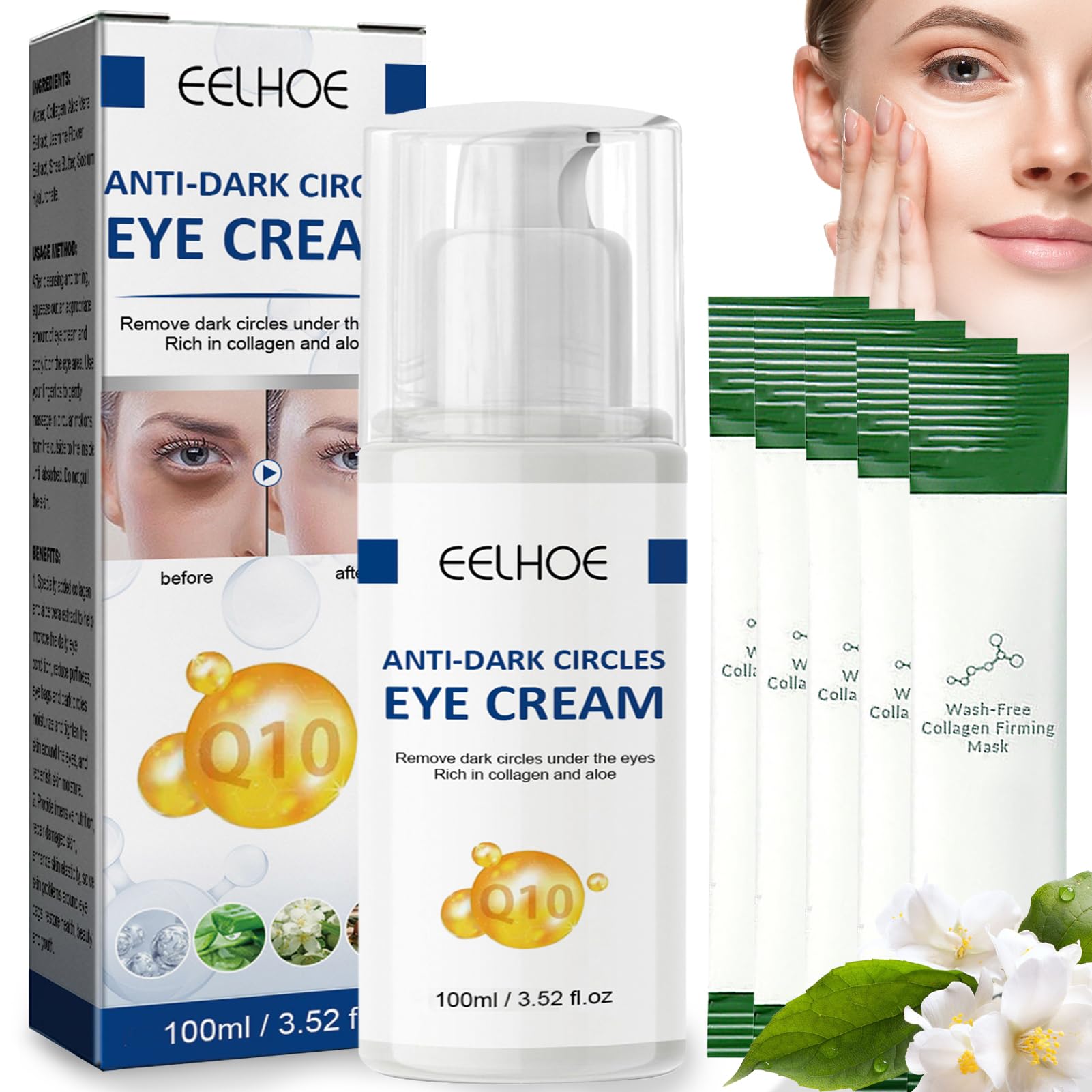 Product Contains : Product contains 1 100ml Jasmine Dark Circle Cream 4 Collagen Active Jasmine Eye Cream. Suitable for all skin types and ages. The light texture regulates excess sebum, moisturizes the skin around the eyes, effectively reduces the aging process of the eyes and restores the skin's vitality. SAFETY WARNING NORelieves Dark Circles and Puffiness : In addition to the moisturizing and anti-aging effect, the eye cream against dark circles also contains soothing ingredients that can relieve eye fatigue, bags and dark circles. This makes your eyes feel fresh and radiant again. Anti-Wrinkle Firming : This active jasmine ointment contains a variety of natural plant extracts and moisturizing ingredients to deeply moisturize the delicate skin around the eyes. It combats fine lines and wrinkles and improves the elasticity and firmness of the eye contour. With long-term use, the skin around the eyes can look younger and smoother. Instructions for Use : Apply a thin layer of jasmine cream in the morning and evening after cleansing to remove dark circles. Massage into the circles with your fingertips from bottom to top, from outside to inside, until the eye contour cream is completely absorbed by the skin. Skin. The specific characteristics of each skin type are different. It is therefore advisable to perform a test behind the ear before use. Gentle Ingredients : For the sensitive skin around the eyes, we have used plant extracts such as aloe vera and jasmine, which are gentle and non-irritating, along with collagen, shea butter and other nourishing ingredients, to ensure that it is well tolerated by all skin types and can be used with confidence. Product Contains : Product contains 1 100ml Jasmine Dark Circle Cream 4 Collagen Active Jasmine Eye Cream. Suitable for all skin types and ages. The light texture regulates excess sebum, moisturizes the skin around the eyes, effectively reduces the aging process of the eyes and restores the skin's vitality.Oogcrème 100 ml, Crème Tegen Donkere Kringen met Oogmasker, Jasmijn Oogcrème, Jasmijnzalf Tegen Donkere Kringen Product bevat : Product bevat 1 100ml Jasmine Dark Circle Cream 4 Collagen Active Jasmine Eye Cream. Geschikt voor alle huidtypen en leeftijden. De lichte textuur reguleert overtollig talg, hydrateert de huid rond de ogen, vermindert effectief het verouderingsproces van de ogen en herstelt de vitaliteit van de huid. VEILIGHEIDSWAARSCHUWING NOVerlicht donkere kringen en wallen : Naast de hydraterende en anti-aging werking bevat de oogcrème tegen donkere kringen ook verzachtende ingrediënten die vermoeidheid van de ogen, wallen en donkere kringen kunnen verlichten. Hierdoor voelen uw ogen weer fris en stralend aan. Anti-rimpel verstevigend : Deze actieve jasmijnzalf bevat een verscheidenheid aan natuurlijke plantenextracten en hydraterende ingrediënten om de delicate huid rond de ogen diep te hydrateren. Het bestrijdt fijne lijntjes en rimpels en verbetert de elasticiteit en stevigheid van de oogcontouren. Bij langdurig gebruik kan de huid rondom de ogen er jonger en gladder uitzien. Gebruiksaanwijzing : Breng 's ochtends en 's avonds na het reinigen een dunne laag jasmijncrème aan om donkere kringen te verwijderen. Masseer met uw vingertoppen van onder naar boven, van buiten naar binnen, in de kringen, totdat de oogcontourcrème volledig is opgenomen door de huid. Huid. De specifieke kenmerken van elk huidtype zijn anders. Daarom is het raadzaam om vóór gebruik een test achter het oor uit te voeren. Zachte ingrediënten : Voor de gevoelige huid rond de ogen hebben we plantenextracten zoals aloë vera en jasmijn gebruikt, die zacht en niet-irriterend zijn, samen met collageen, sheaboter en andere voedende ingrediënten, om ervoor te zorgen dat het door alle huidtypen goed wordt verdragen en met vertrouwen kan worden gebruikt. Product bevat : Product bevat 1 100ml Jasmine Dark Circle Cream 4 Collagen Active Jasmine Eye Cream. Geschikt voor alle huidtypen en leeftijden. De lichte textuur reguleert overtollig talg, hydrateert de huid rond de ogen, vermindert effectief het verouderingsproces van de ogen en herstelt de vitaliteit van de huid.