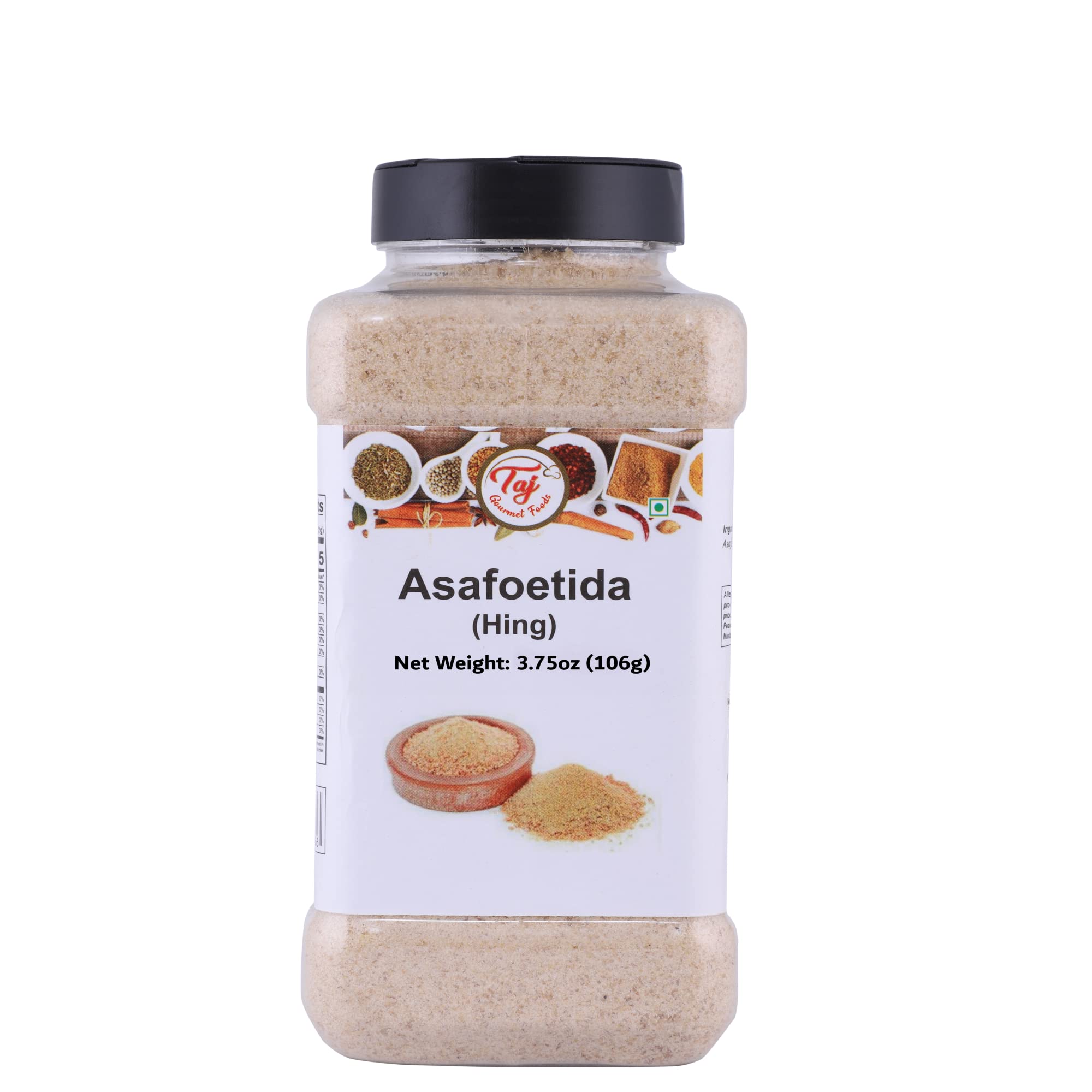 TAJ Hing Asafetida Asafoetida Garlic Substitute GMO-Free No Salt (3.75oz) 3.75 Ounce (Pack of 1)