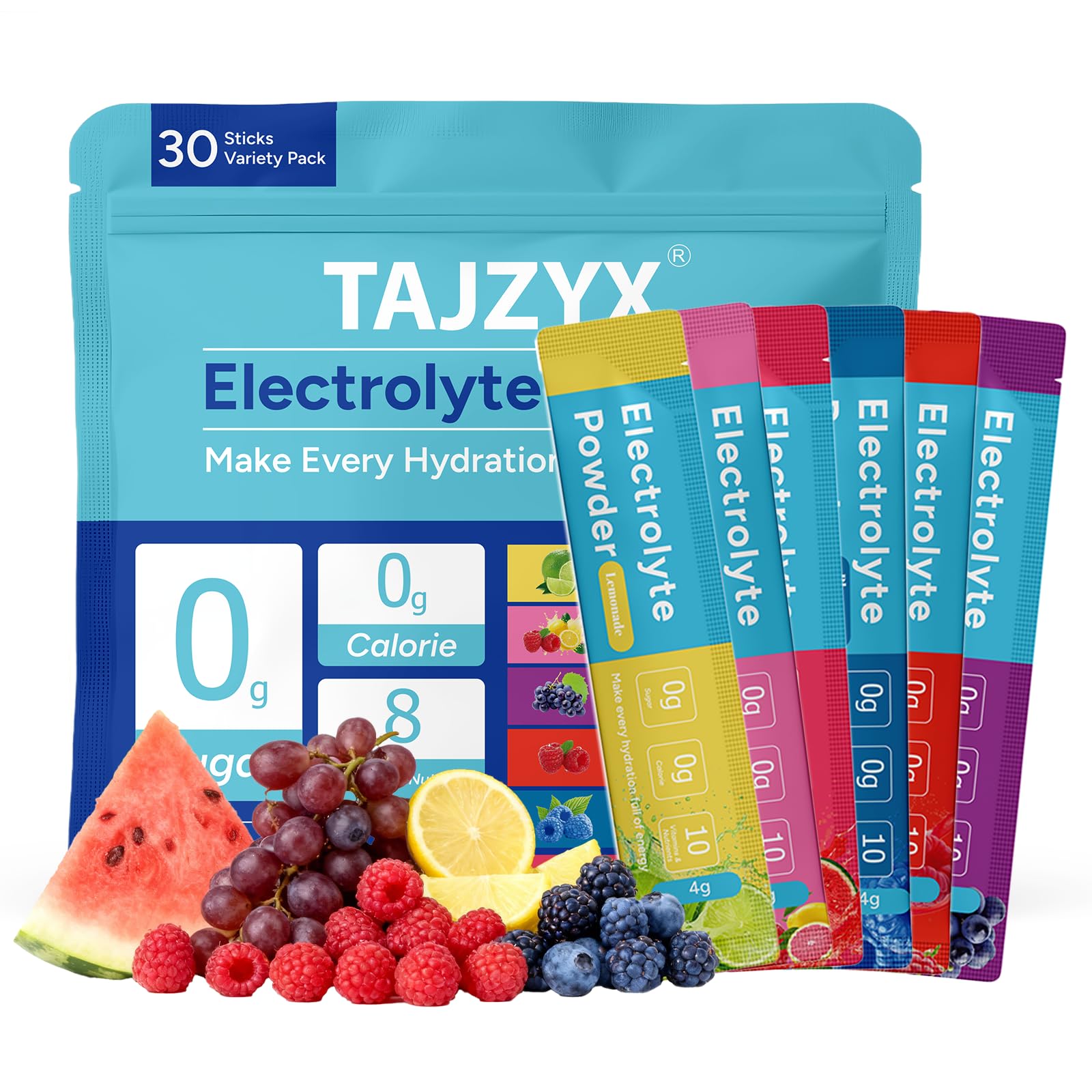 ? Great for Daily Use, Travel Outdoor Adventures – Whether at work, on-the-go, or traveling , these convenient hydration packs easily fit into any bag or pocket. Stay hydrated during flights, hikes, and long days with these light sugar free electrolytes sticks. 30 Stickpacks, Clean Ingredients You Can Trust – This variety pack includes 30 convenient hydration packets sugar free sticks packed with clean, plant-based ingredients. A healthy way to support hydration without guilt — perfect for the whole family. Easy to Mix Anytime, Anywhere – Just tear, pour, and stir into water. Our fast-dissolving electrolytes powder packets blend smoothly, creating a delicious, hydrating drink in seconds — ideal hydration packets for busy professionals and students. Ideal for Sports, Fitness Endurance – Designed for intense workouts, long runs, and post-gym recovery, our hydration packets sugar free help prevent dehydration and muscle cramps. A must-have electrolytes powder packets choice for athletes and gym enthusiasts. ? Electrolyte Drink Mix – Each serving of these hydration packs contains 8 vital electrolytes and trace minerals, supporting energy, focus, and quick recovery after exercise. Rehydrate smarter with this premium electrolytes sugar free mix. Real Fruit Flavors for Natural Taste – Made with real real fruit extracts, each stick of our hydration packets offers refreshing, natural flavors — no artificial colors or sweeteners. Perfect for anyone who wants a clean, flavorful sugar free electrolytes drink. Sugar Electrolytes – Enjoy fast hydration anytime with our hydration packets sugar free formula. These electrolytes powder packets deliver essential minerals and electrolytes without any sugar, calories, or artificial additives — pure clean hydration for your body daily.