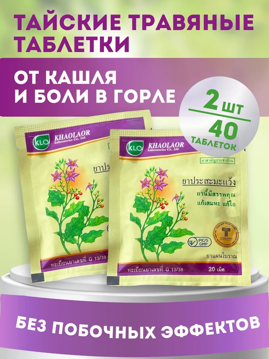 | Комплектация | тайские таблетки от кашля Ya Prasah Ma Waeng 20 таблеток - 2 упаковки |