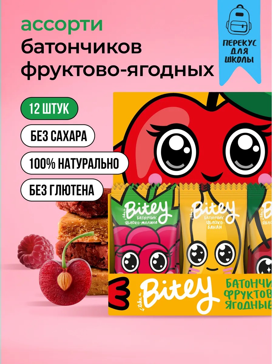 Батончики без сахара Bitey, фруктово-ягодные, 12 шт х 25 гр