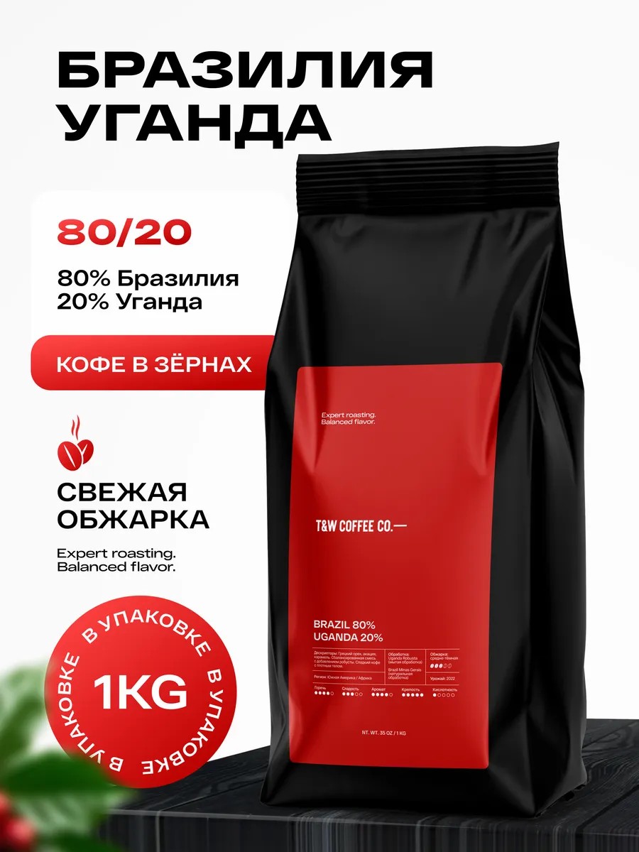 Сбалансированная кофейная смесь с добавлением мытой робусты из Уганды (20%) и отборной арабики из Бразилии (60%) и Перу (20%). Регион произрастания — Южная Америка и Африка. Урожай 2025 года.