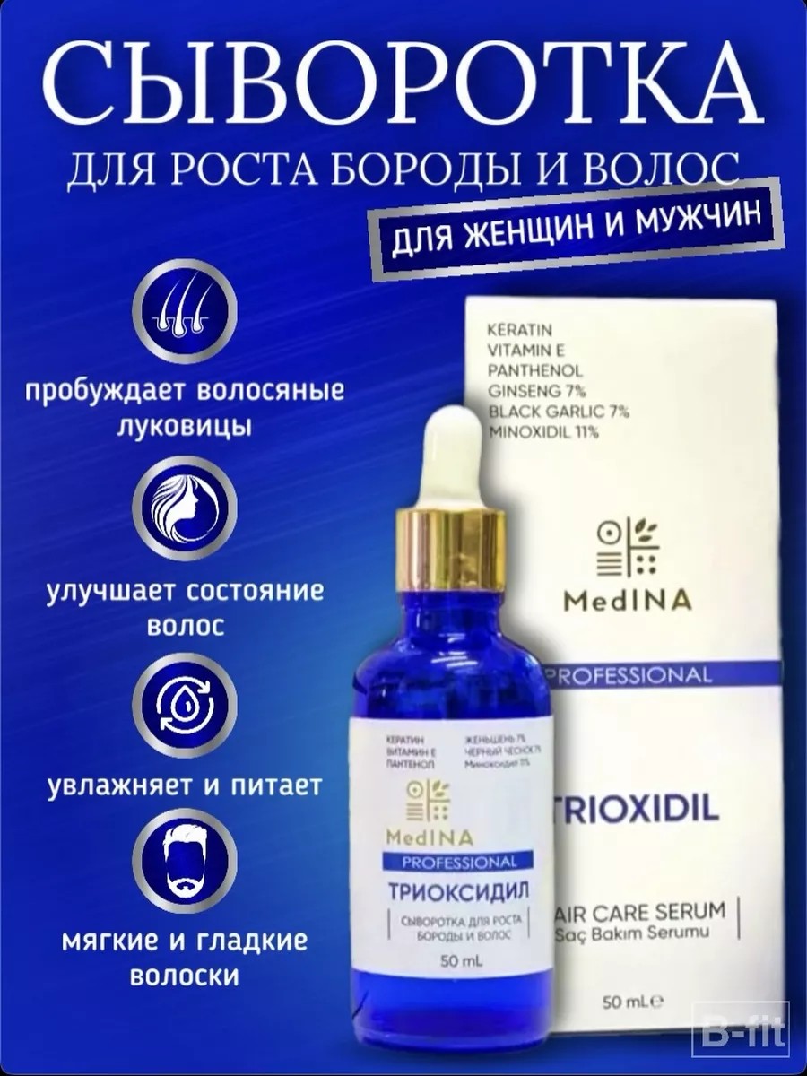 Средство для роста волос и бороды. Это препарат который, способствует росту волос при местном нанесении на кожу головы или лицо. Эффективное средство для роста волос на голове, роста и укрепления бороды. Подходит для мужчин и для женщин.