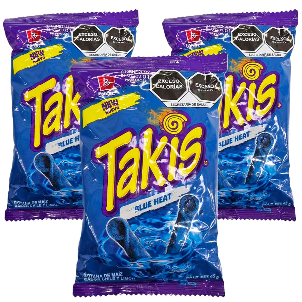 Takis Blue Heat 65g (Pack 3) / Authentic Mexican Blue Takis Hot Rolled Tortilla Chips Snacks and Crisps