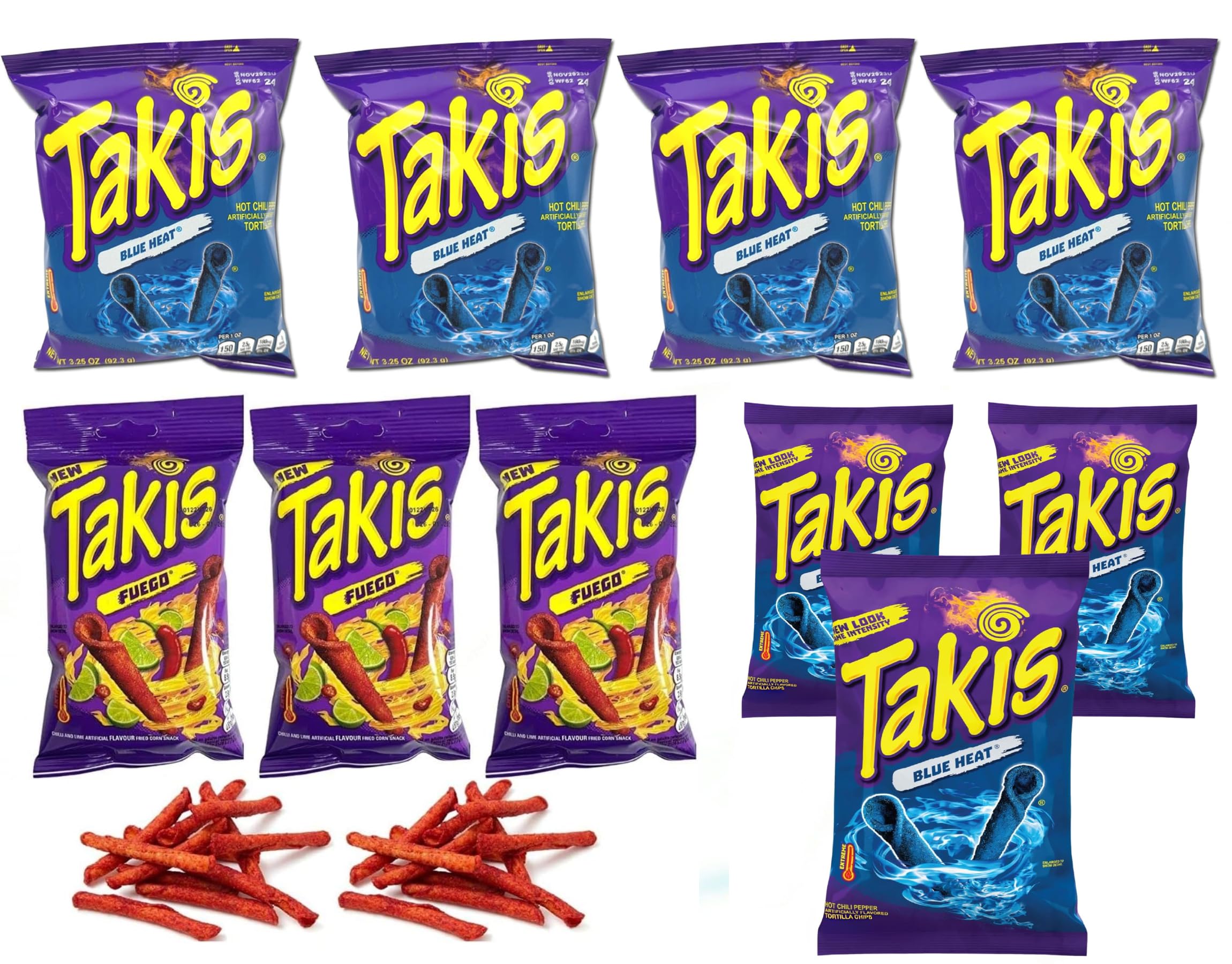Takis Party Pack includes - 3 x 55g Fuego Flavour + 3 x 56.7g Blue Heat + 4 x 92.3g Blue Heat
