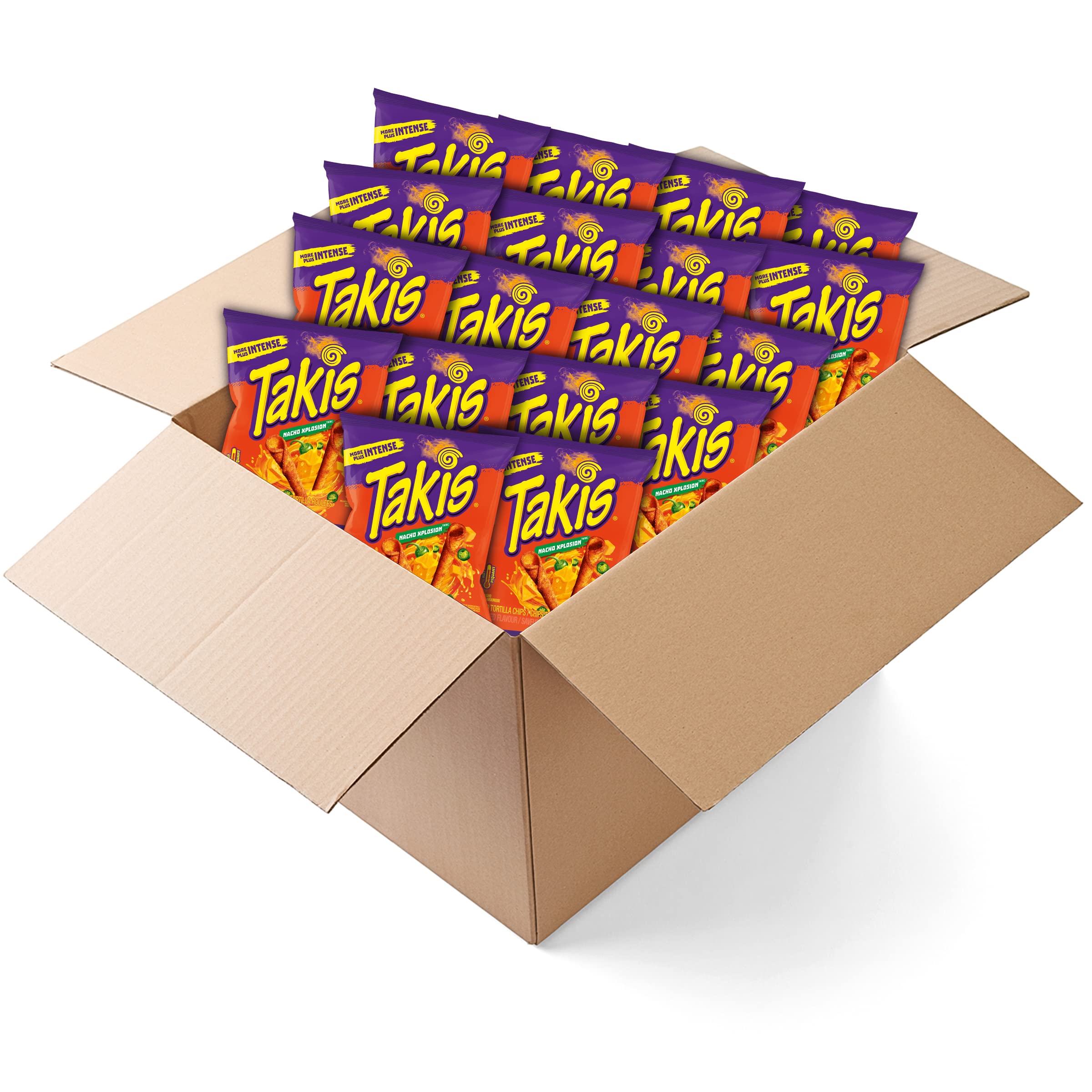 ANYTIME IS SNACK TIME: These spicy tortilla chips are great to share; or keep all to yourself; Dare friends to take your hot-chips challenge at parties, game nights, or any time the craving hits. HOT ON THE TAKIS HEAT METER: Don't say we didn’t warn you; Takis Zesty Nacho Xplosion corn chips hit hot on the Takis Heat Meter; Eat if you dare. CRUNCH MORE: Enjoy even more crunch with this convenient 18 pack of Takis rolled tortilla chips; The individually packed snacks are great for sharing; though we wouldn’t blame you if you kept them all for yourself. FACE THE INTENSITY: Zesty, cheesy, bold flavours upgrade these corn chips to red-hot snack foods at home or on the go. FULL-ON TAKIS FLAVOUR: Crisp and tasty rolled tortilla chips with a fiery fusion of hot-and-zesty flavours in every bold bite.
