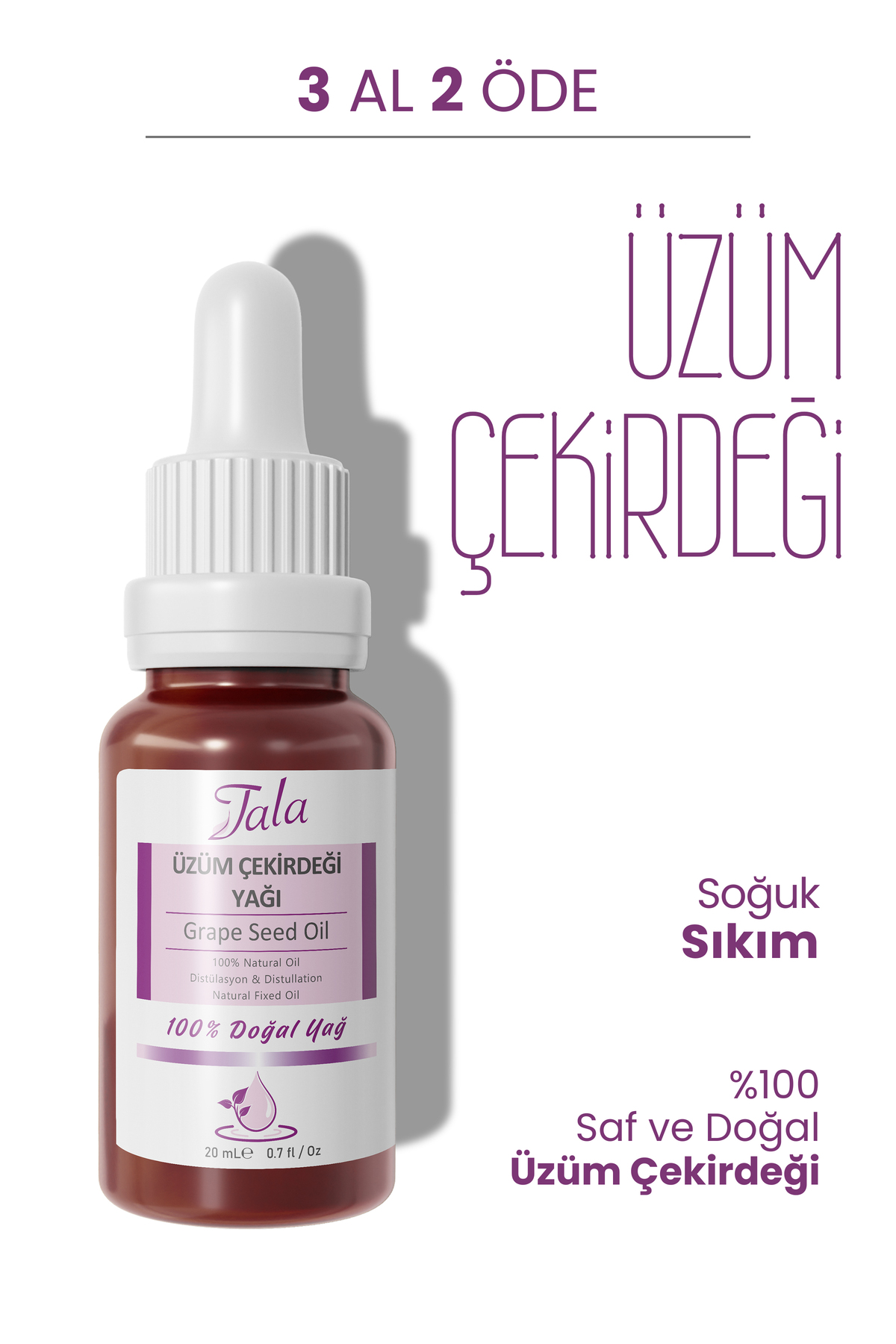 Tala 100 Saf Üzüm Çekirdegi Yagi ile cildinize ve saçlariniza dogal bir bakim sunun ve güzelliginizi ön plana çikarin!