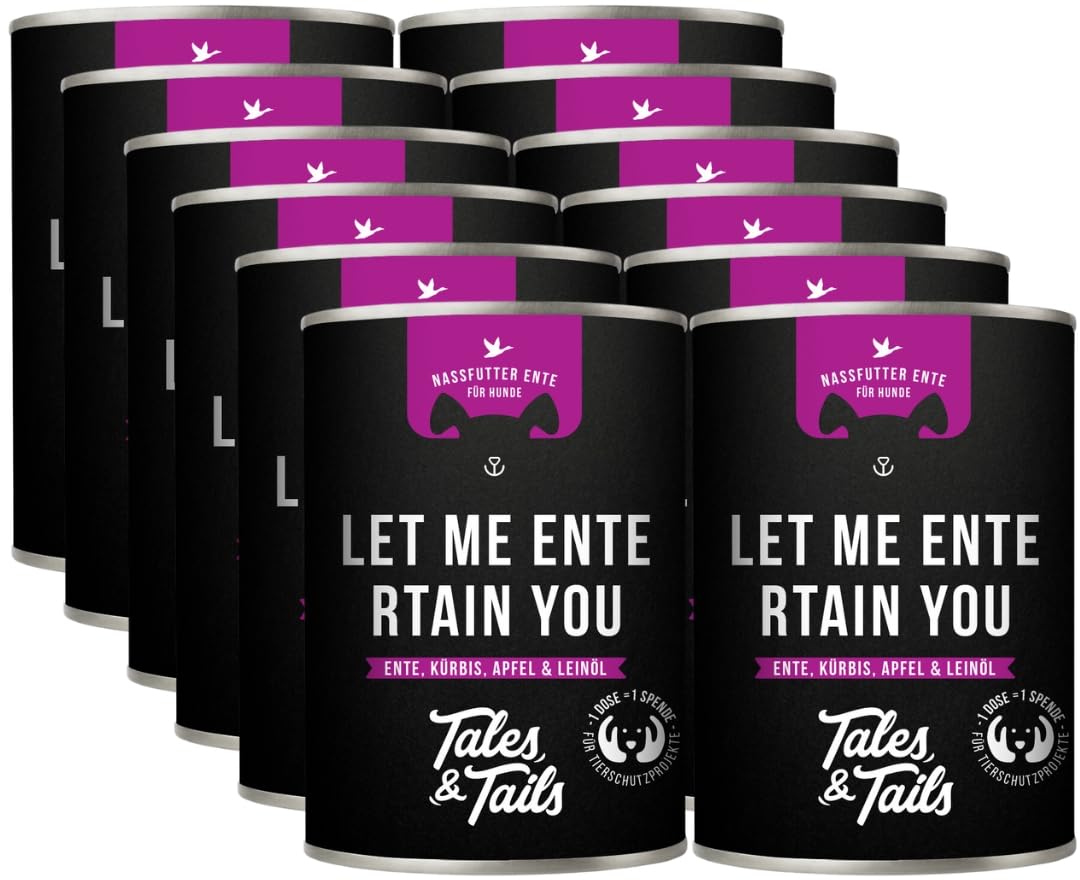 Tales & Tails Let me Entertain You Wet dog food | With 75% duck as animal protein source | Monoprotein | High acceptance and tolerance | 12 x 400 g