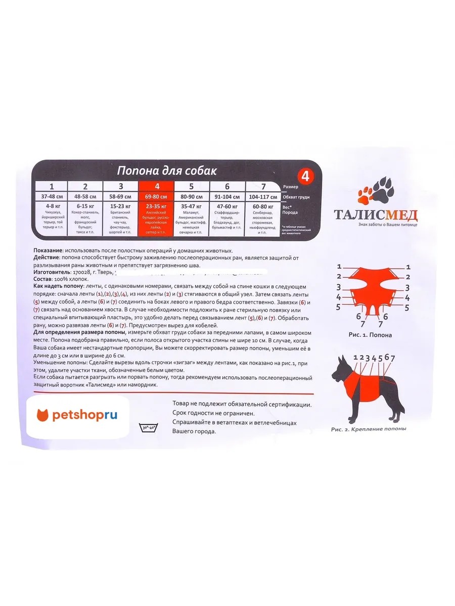 Попона №4 послеоперационная для собак 23-35кг, 69-80см