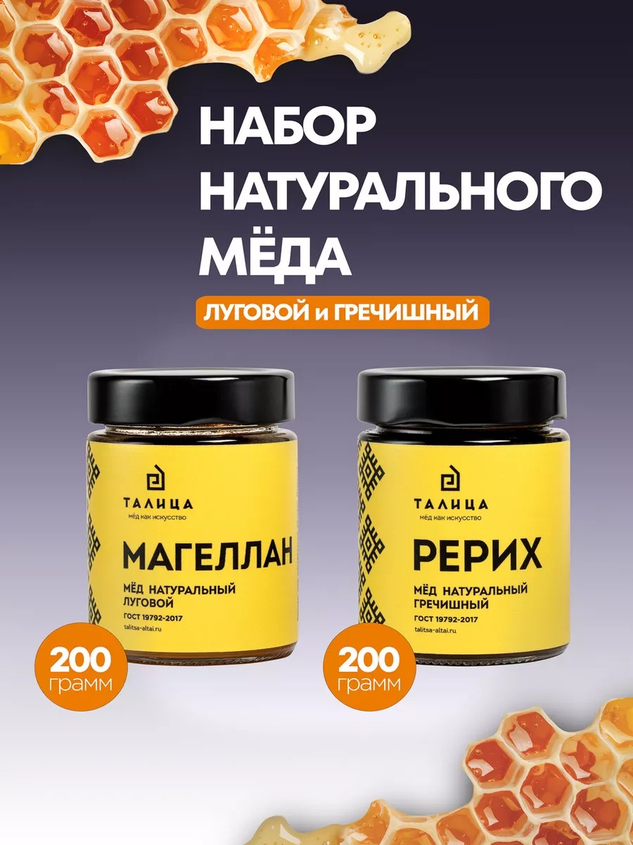 Талица Набор гречишного и лугового мёда 2 шт по 200 гр