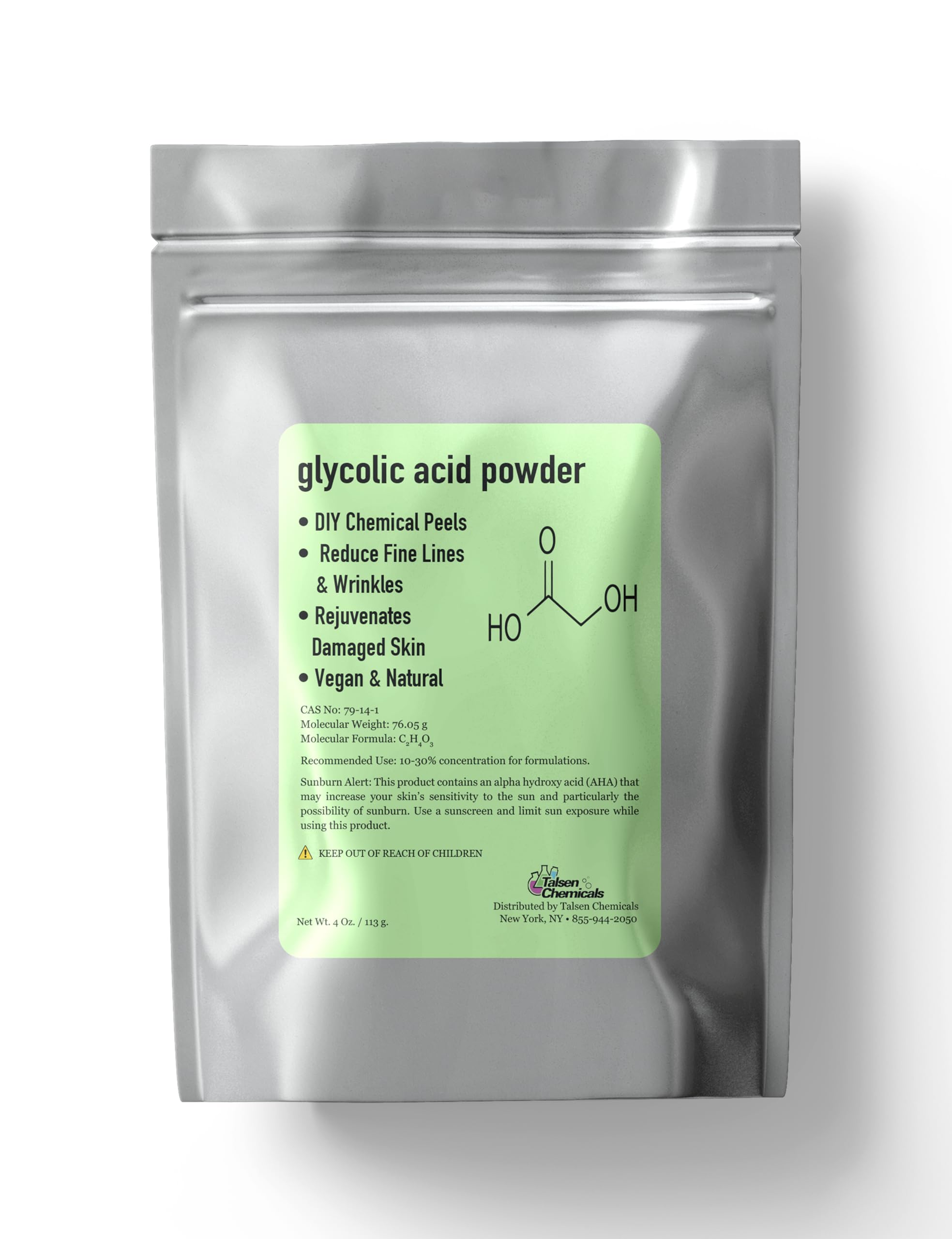 Talsen Chemicals Glycolic Acid Powder DIY Glycolic Crystal Powder is Pure DIY Cosmetics (4 Oz/113 grams)