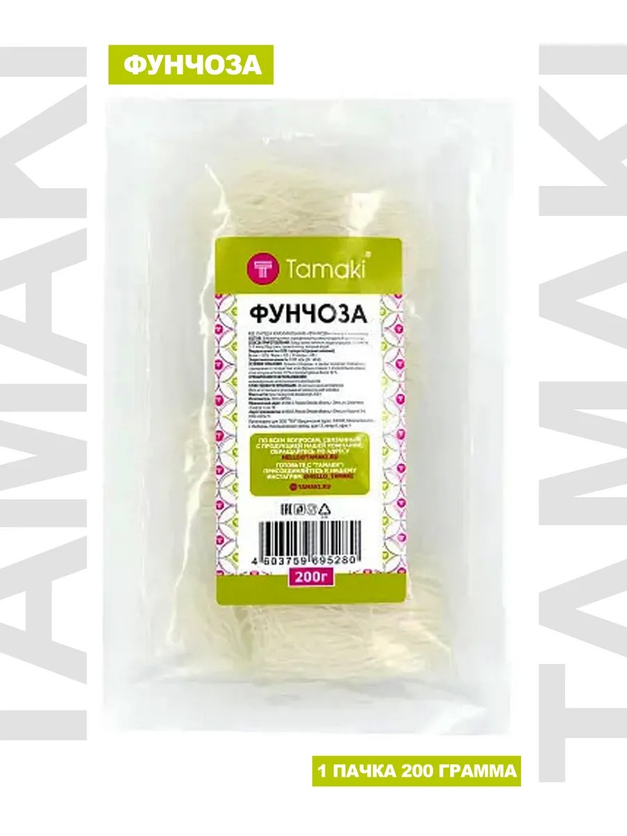 Фунчоза - лапша с плотной текстурой и цельными нитями, которая при приготовлении остается пышной, не распадается на части и не превращается в комок. Фунчоза готовится из отборного сырья, производится на высокотехнологичном оборудовании под тщательным наблюдением специалистов.Лапша выиграла большинство слепых дегустаций среди шеф-поваров Академии суши "Тамаки". Фунчоза считается низкокалорийным продуктом, идеально подходит для приготовления пп-блюд. Ее подают с жареным мясом, рыбой, яйцами, грибами, свежими, тушеными и жареными овощами, добавляют в суп и корейский салат, в спринг-роллы. Лучше всего фунчоза сочетается с кисло-сладкими соусами и острыми пряностями. Состав: Бобовый крахмал, картофельный крахмал, кукурузный крахмал, вода .