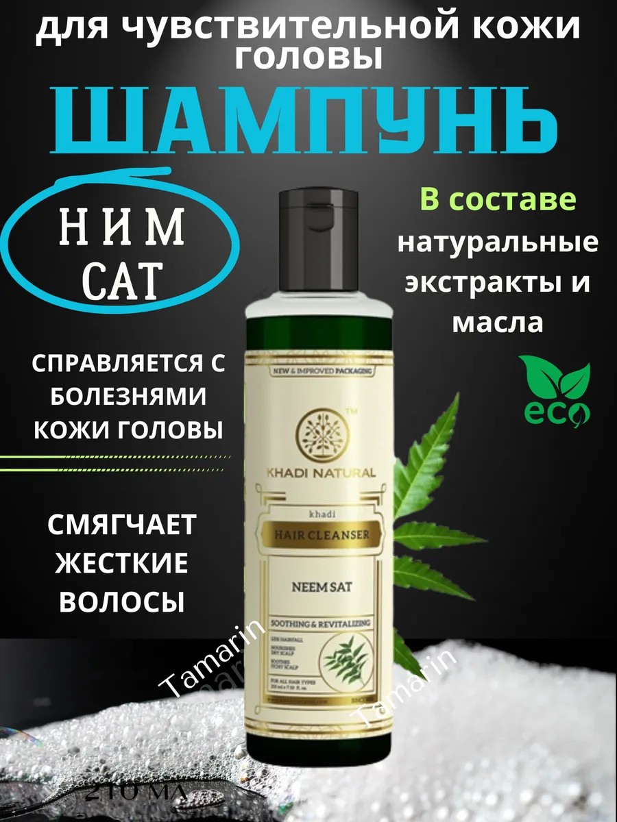 | Действие | Индийский шампунь Khadi Neem Sat India Очищение волос; Шампунь Кхади Ним Сат травяной шампунь Защита Блеск волос; Натуральный Шампунь от перхоти от выпадения волос Без SLS |