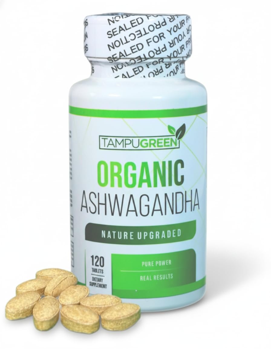 TAMPUGREEN Organic Ashwagandha Supplement | 675 mg Root Extract with Black Pepper | 120 Capsules | Non-GMO | Caffeine-Free