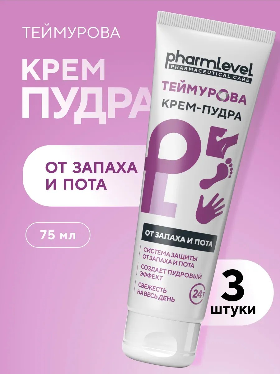 Дезодорант Крем-пудра Теймурова pharmlevel- это уникальное средство от пота и запаха. Этот дезодорант для рук, ног и тела- создан специально для тех, кто подвержен повышенной потливости. Благодаря своей формуле и бархатной текстуре, он эффективно устраняет запах и избыточное потоотделение. Если вам необходимо найти дезодорант крем для ног от запаха, то Крем-пудра Теймурова отличный выбор. Крем - пудра Теймурова - это не просто дезодорант для ног от запаха и пота, он также эффективен для борьбы с потоотделением подмышек. Если вы хотите избавиться от неприятного запаха в этой зоне тела, то этот дезодорант от пота для подмышек поможет вам справиться с этой задачей. Этот крем пудра дезодорант предназначен не только для устранения запаха и пота, но и для создания ощущения свежести. Он делает вашу кожу мягкой и гладкой, а также придает приятный запах для тела. Если вам нужно средство от высокого потоотделения, то крем от пота Теймурова - ваш надежный помощник. Использование крем пудры Теймурова не только устраняет запах, но и предотвращает его возникновение. Если вы хотите держать свои ноги свежими и приятно пахнущими, то этот дезодорант для ног от запаха и пота - то, что вам нужно. Он эффективно справляется с проблемой запаха ног и избыточной потливости, обеспечивая длительное ощущение комфорта. Крем пудра Теймурова также является отличным кремом от пота подмышек и запаха. С этим крем-дезодорантом каждый шаг станет настоящим удовольствием – словно ты паришь на облаках свежести. Тайна притягательности скрыта в его формуле, которая бережно заботится о коже, делая ее гладкой и шелковистой. Забудь о неприятных ощущениях – этот дезодорант для ног надежно защитит тебя от излишней потливости. Будь активной и жизнерадостной, не ограничивай себя! Дари своим ногам уход, который заслуживают они. Это средство для ног подарит им легкость и свободу движений.