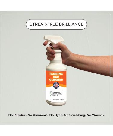 MADE IN THE USA: Tillbrook embodies true American craftsmanship. Proudly manufactured in the USA, we uphold the highest ethical and environmental standards in every product we create. GOOD FOR CLEANING, GOOD FOR YOU: Our non-toxic, scent-free, dye-free acrylic cleaner spray allows you to clean without worry, ensuring no harm to yourself or the surfaces you cherish. VERSATILITY BEYOND TANNING BEDS: Our multi-use acrylic cleaner is effective on glass, metal, plastic, acrylic, fiberglass, ceramics, porcelain, marble, and all other non-porous surfaces. STREAK-FREE: Let our proprietary formula work its magic. Experience a brilliant, streak and spot-free result with minimal scrubbing or polishing effort. Enhance your tanning experience instantly with our tanning bed cleaner for indoor beds. VALUE-SIZED: Introducing the Tillbrook Tanning Bed Cleaner—an exceptional choice for effortlessly cleaning a wide range of non-porous surfaces, perfect for both home and professional environments. Our generous 32 oz, ready-to-use formula ensures you have an ample supply for all your cleaning needs with up to 500 sq ft of coverage.