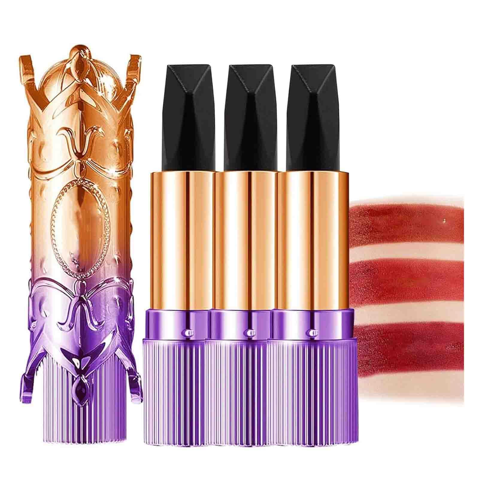 Technical specifications: Lifespan: 3 years. Intended use: Women. Contents: 1 2 3 pieces. Note: 1. Due to differences in lighting and screen settings, the color of the item may differ slightly from the pictures. 2. Please allow for slight differences due to manual measurement. 3. No other accessories are included.Exquisite Gift Elegant and stylish, small and portable, easy to carry, especially to the office, dates, shopping, and summer parties with friends. Perfect gift for girlfriends, daughters, and more. Moisturizing Contains natural moisturizing ingredients that provide essential moisture to lips to prevent dryness and peeling. Matte Effect The lipstick has a comfortable matte finish that lasts for hours. Long Lasting One application gives you rich, long-lasting color. It won't easily come off from cups, dishes, clothes, or smudge when touching lips or face. Color Changing Three Shade Lipstick This product is more suitable for your beauty needs. Easy to apply, smooth every time with the unique applicator brush.Color Changing Three Shade Lipstick, Purple Gold Fantasy Tricolor Lipstick, Moisturizing Not Oily No Stain on Cup, Color Changing Lip Balm 3 pièces.DESCRIPTION DU PRODUIT Caractéristiques techniques : durée de vie : 3 ans. Utilisation : femme. Contenu : 1 2 3 pièces. Remarque : 1. Due to differences in lighting and screen settings, the colour of the item may differ slightly from the pictures. 2. Veuillez tolérer des différences dues à la mesure manuelle. 3. Aucun autre accessoire n'est inclus.Cadeau exquis Élégant et élégant, petit portable, facile à transporter, en particulier dans le bureau, les rendez-vous, le shopping, les fêtes d'été avec amis. Cadeau parfait pour les amies, les filles, les filles, etc. Moisturizing Contains natural moisturizing ingredients that provide essential moisture to lips to prevent dry and peeling. Effet mat Le lipstick, avec un mat confortable et réduit à un fini mat qui dure pendant des heures. Long Lasting Une application vous donne une couleur riche et durable. It won't come off easily from cups, dishes, clothes or smudge easily when touching lips or face. Color Changing Three Shade Lipstick Ce produit est plus adapté pour votre beauté. Facile à appliquer, lisse chaque temps avec la brosse unique applicateur.