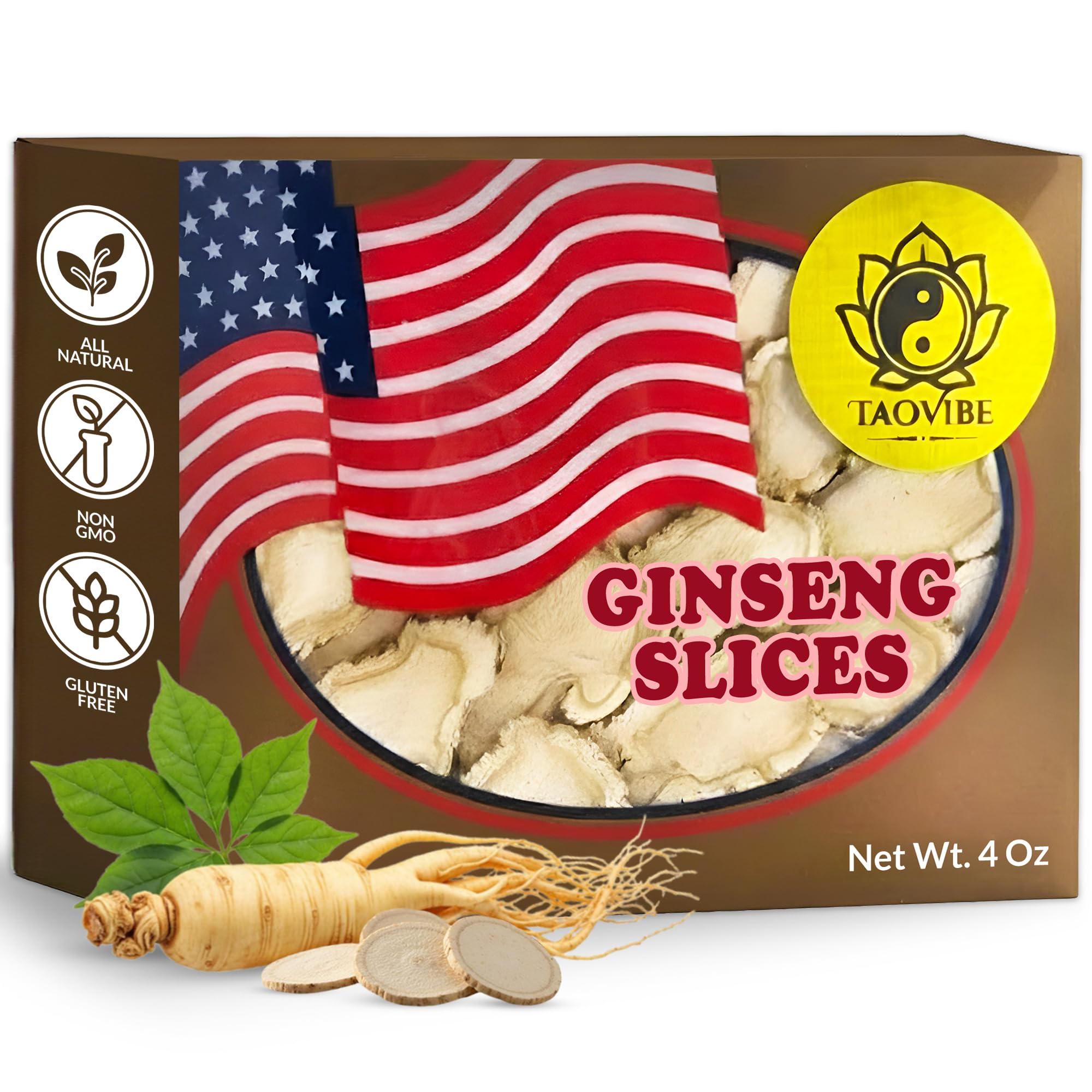 TAOVIBE American Ginseng Slices Pure Wisconsin Ginseng Root for Energy Immunity Focus & Cognitive Support Non-GMO Gluten-Free Hand-Sliced for Freshness Suitable for Tea Cooking & Wellness