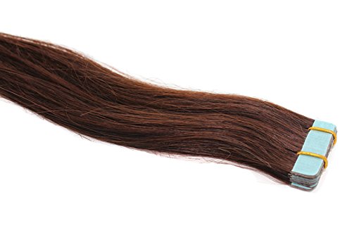 Tape In On 100 Echthaar Remy Hair Extensions Haarverlängerung 2,5g Tresse (50cm - 10 Tressen - 2 Dunkelbraun)
