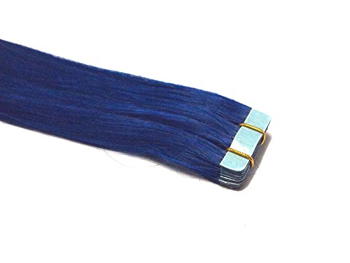 Tape In On 100 Echthaar Remy Hair Extensions Haarverlängerung 2,5g Tresse (50cm - 10 Tressen - Blue)