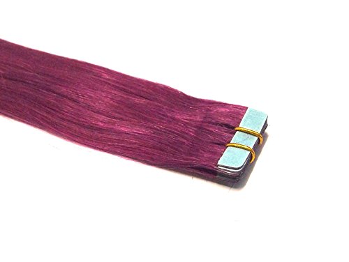 Tape In / On 100% Echthaar Remy Hair Extensions Haarverlängerung 2,5g / Tresse (50cm - 10 Tressen - Violett)