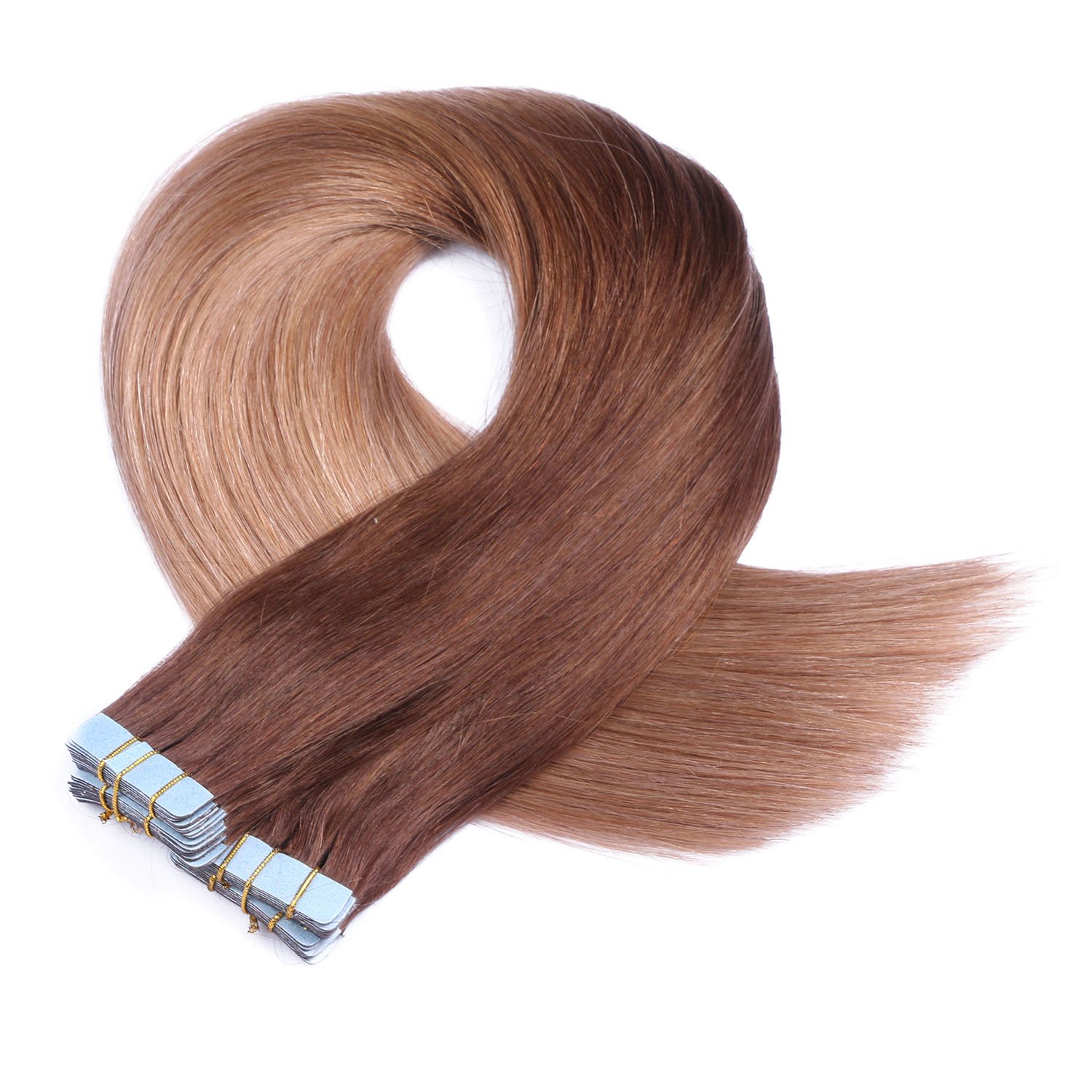 Novon HairExtention Tape in Hair Extensions 100 % Remy-Rewhaar Real hair extension 40cm, 50cm, 60cm or 70cm with self-adhesive tape extensions.Indian real hair, Remy Quality Hair weight/Tresse: 2.5 grams available lengths: 50cm, 60cm wide/tress: 4.0cm - long hair fast and simple!- The strands of hair are quickly and easily glued into their own hair with finished adhesive strips.- Ideal for fast and gentle hair extension or hair compression.You always need two tape strands for a single extension strand.- Hair weight 2.5 grams per strand for a complete hair extension is necessary about 100g - 150g, i.e. 40-60 strands.- Self -adhesive tapestripes with 4 cm width x 0.8 cm.How many strands do I need?- 10-20 pieces for volume and hair sealing- 30-40 pieces for hair extension- 50-60 pieces for hair extension + extra volume If you buy from 40 strands, you get 12 replacement tapes free of charge !!!the tape in method is particularly gentle on the own hair, they are attached in the sandwich process and brings very pleasant comfort through the tape technology.The ultra -laugh tapes ensure invisible and comfortable hold and are also suitable for fine hair due to the high -quality workmanship.The uniquely gentle coloring process ensures a natural color result and a natural shine.Coloring & hairdressing: Yes, real hair can be colored, smooth, curly and hairy as with your own hair (but unfortunately there is no guarantee when it is colored).100% remy tape-in ??extensions real hair set for hair compression and hair extension.High -quality smooth remy real hair, depending on the care and stress, the bricks are very long.How many strands do I need: 10-20 pieces for volume and hair compression./// 30-40 pieces for hair extension /// 50-60 pieces for hair extension + extra volume.10 Tressen - 50cm long - 4cm wide / 2.5g = 25g. Novon Hairextention Tape In Hair Extensions 100 % Remy-Echthaar Echthaarverlängerung 40cm, 50cm, 60cm oder 70cm mit selbstklebenden Tape-Extensions. Indisches Echthaar, REMY Qualität Haargewicht/Tresse: 2,5 Gramm Verfügbare Längen: 50cm, 60cm Breite/Tresse: 4,0cm - Langes Haar schnell und einfach! - Die Haarsträhnen werden mit fertigen Klebestreifen schnell und einfach ohne weiteres Zubehör in Ihr eigenes Haar geklebt. - Ideal für eine schnelle und schonenden Haarverlängerung oder Haarverdichtung. Für eine einzelne Verlängerungssträhne benötigen Sie immer zwei Tape-Strähnen. - Haargewicht 2,5 Gramm pro Strähne Für eine komplette Haarverlängerung sind erfahrungsgemäß etwa 100g - 150g, also 40-60 Strähnen nötig. - selbstklebende Tapestreifen mit 4 cm Breite x 0,8 cm. Wieviel Strähnen benötige ich ? - 10-20 Stück für Volumen und Haarverdichtung - 30-40 Stück für Haarverlängerung - 50-60 Stück für Haarverlängerung + extra Volumen bei einem Kauf ab 40 Strähnen erhalten Sie 12 Ersatztapes Gratis dabei!!!Die Tape In Methode ist besonders schonend zum Eigenhaar, sie werden im Sandwichverfahren angebracht und bringt einen sehr angenehmen Tragekomfort durch die Tape Technologie. Die ultraflachen Tapes sorgen für unsichtbaren und komfortablen Halt und sind durch die hochwertige Verarbeitung auch für feines Haar geeignet. Der einzigartig schonende Färbeprozess sorgt für ein natürliches Farbergebnis und einen natürlichen Glanz. Färben & Frisieren: JA, Echthaar lässt sich dunkler färben, glätten, locken und frisieren wie beim Eigenhaar (doch leider gibt es bei einer Färbung keine Gewährleistung). 100% Remy Tape-In Extensions Echthaar Set für Haarverdichtung und Haarverlängerung. Hochwertiges glattes Remy Echthaar, je nach Pflege und Beanspruchung sind die Tressen sehr lange Haltbar. Wieviel Strähnen benötige ich: 10-20 Stück für Volumen und Haarverdichtung. /// 30-40 Stück für Haarverlängerung /// 50-60 Stück für Haarverlängerung + extra Volumen. 10 Tressen - 50cm Lang - 4cm Breit / 2,5g = 25g.Tape In - On Hair Extensions - # 4/27 OMBRE - 50cm - 10 Tressen je 4cm Breit / 2,5g - 100% Remy Echthaar Haarverlängerung/Extention mit Klebeband Tressen by NOVON Hair Extentions 10 Tressen - je 50cm / 2,5g = 25g