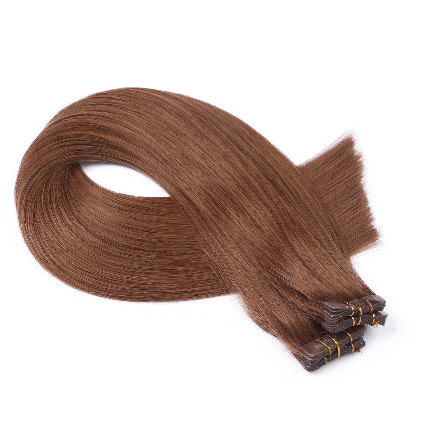 Novon tape in Hair Extensions 100 % Remy-Renhair Real hair extension 40cm, 50cm, 60cm or 70cm with self-adhesive tape extensions.Indian real hair, Remy Quality Hair weight/Tresse: 2.5 grams available lengths: 50cm, 60cm wide/tress: 4.0cm - long hair fast and simple!- The strands of hair are quickly and easily glued into their own hair with finished adhesive strips.- Ideal for fast and gentle hair extension or hair compression.You always need two tape strands for a single extension strand.- Hair weight 2.5 grams per strand for a complete hair extension is necessary about 100g - 150g, i.e. 40-60 strands.- Self -adhesive tapestripes with 4 cm width x 0.8 cm.How many strands do I need?- 10-20 pieces for volume and hair sealing- 30-40 pieces for hair extension- 50-60 pieces for hair extension + extra volume If you buy from 40 strands, you get 12 replacement tapes free of charge !!!the tape in method is particularly gentle on the own hair, they are attached in the sandwich process and brings very pleasant comfort through the tape technology.The ultra -laugh tapes ensure invisible and comfortable hold and are also suitable for fine hair due to the high -quality workmanship.The uniquely gentle coloring process ensures a natural color result and a natural shine.Coloring & hairdressing: Yes, real hair can be colored, smooth, curly and hairy as with your own hair (but unfortunately there is no guarantee when it is colored).100% remy tape-in ??extensions real hair set for hair compression and hair extension.High -quality smooth remy real hair, depending on the care and stress, the bricks are very long.How many strands do I need: 10-20 pieces for volume and hair compression./// 30-40 pieces for hair extension /// 50-60 pieces for hair extension + extra volume.60 tresses - 70cm long - 4cm wide / 2.5g = 150g - Novon hair extraction. Novon Tape In Hair Extensions 100 % Remy-Echthaar Echthaarverlängerung 40cm, 50cm, 60cm oder 70cm mit selbstklebenden Tape-Extensions. Indisches Echthaar, REMY Qualität Haargewicht/Tresse: 2,5 Gramm Verfügbare Längen: 50cm, 60cm Breite/Tresse: 4,0cm - Langes Haar schnell und einfach! - Die Haarsträhnen werden mit fertigen Klebestreifen schnell und einfach ohne weiteres Zubehör in Ihr eigenes Haar geklebt. - Ideal für eine schnelle und schonenden Haarverlängerung oder Haarverdichtung. Für eine einzelne Verlängerungssträhne benötigen Sie immer zwei Tape-Strähnen. - Haargewicht 2,5 Gramm pro Strähne Für eine komplette Haarverlängerung sind erfahrungsgemäß etwa 100g - 150g, also 40-60 Strähnen nötig. - selbstklebende Tapestreifen mit 4 cm Breite x 0,8 cm. Wieviel Strähnen benötige ich ? - 10-20 Stück für Volumen und Haarverdichtung - 30-40 Stück für Haarverlängerung - 50-60 Stück für Haarverlängerung + extra Volumen bei einem Kauf ab 40 Strähnen erhalten Sie 12 Ersatztapes Gratis dabei!!!Die Tape In Methode ist besonders schonend zum Eigenhaar, sie werden im Sandwichverfahren angebracht und bringt einen sehr angenehmen Tragekomfort durch die Tape Technologie. Die ultraflachen Tapes sorgen für unsichtbaren und komfortablen Halt und sind durch die hochwertige Verarbeitung auch für feines Haar geeignet. Der einzigartig schonende Färbeprozess sorgt für ein natürliches Farbergebnis und einen natürlichen Glanz. Färben & Frisieren: JA, Echthaar lässt sich dunkler färben, glätten, locken und frisieren wie beim Eigenhaar (doch leider gibt es bei einer Färbung keine Gewährleistung). 100% Remy Tape-In Extensions Echthaar Set für Haarverdichtung und Haarverlängerung. Hochwertiges glattes Remy Echthaar, je nach Pflege und Beanspruchung sind die Tressen sehr lange Haltbar. Wieviel Strähnen benötige ich: 10-20 Stück für Volumen und Haarverdichtung. /// 30-40 Stück für Haarverlängerung /// 50-60 Stück für Haarverlängerung + extra Volumen. 60 Tressen - 70cm Lang - 4cm Breit / 2,5g = 150g - NOVON Hairextention.Tape In - On Hair Extensions - # 5-70cm - 60 Tressen je 4cm Breit / 2,5g - 100% Remy Echthaar Haarverlängerung/Extention mit Klebeband Tressen by NOVON Hair Extentions 60 Tressen - je 40cm / 2,5g = 150g