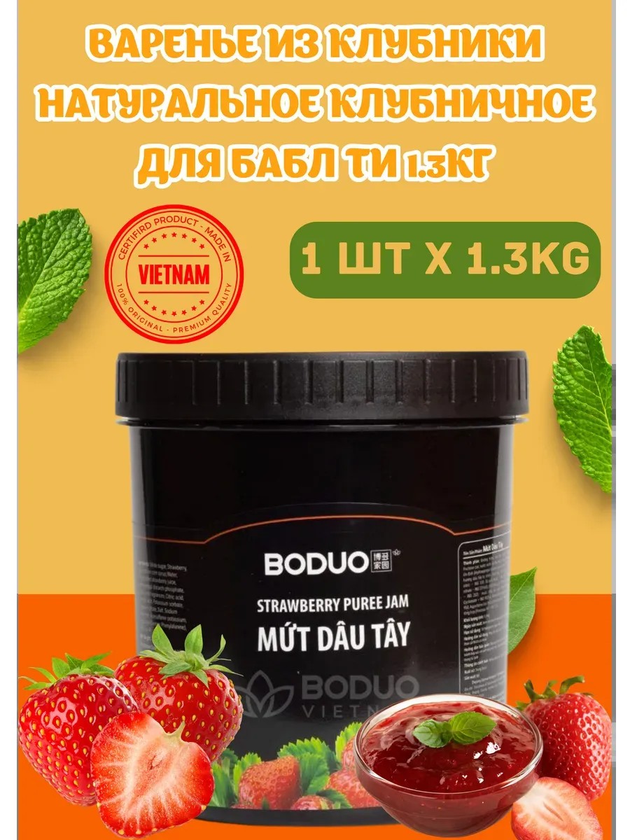Варенье из клубники для bubble tea бабл ти 1.3кг это уникальный низкокалорийный десерт, который содержит только пользу природных ингредиентов и ничего «лишнего»! Если ваш выбор это здоровое или диетическое фитнес питание, то натуральное низкокалорийное варенье из вишни или ежевики, клубники или абрикосов, мандарина или малины, земляники и других фруктов и ягод без косточки станут прекрасным выбором. Джемы подойдут как еда на каждый день (как сладкое к чаю, пюре для приготовления полезных тостов к завтраку, фруктовый/ягодный наполнитель для каш, творога и т.д.). Также «правильные» варенья (земляничное, персиковое, вишневое, малиновое, или любое другое) на пектине можно использовать для приготовления любой выпечки: пирогов, слоек, булочек. Подойдет вишневый или клубничный, малиновый или абрикосовый, персиковый или ежевичный или любые другие конфитюры из ассортимента нашего бренда и для украшения торта. Натуральный кондитерский десерт в красивой банке можно преподнести не только для себя, но и в подарок (особенно актуален в холодное время года, в том числе как новогодний). На выбор доступны вишня, абрикос, малина, ежевика и т.д. Такой презент будет актуален не только для тех, кто придерживается правильного питания, но и для вегетарианцев и диабетиков. Подарочные вкусности это отличный презент к новому году, дню рождения, 8 марта или к любому другому празднику. Он будет актуален для мамы, бабушки, жены, любимой девушки или других дорогих вам женщин. Преподнести его можно подруге или сестре, коллегам, учителям или сотрудникам. Вы можете отдать предпочтение одной упаковке или составить целое ассорти! Вкусняшки постные, все они имеют пометку «органик» (используемые для приготовления садовые и лесные ягоды и фрукты выращены в экологически чистом месте без применения химикатов). Такое вкусное органическое повидло это сладости, которые без опасений можно предлагать детям любого возраста. Благодаря присутствию в составе исключительно природных сахаров и минимальному содержанию углеводов, продукты подойдут не только для пп, но и похудения. Также они будут актуальны как диабетические. Простой низкоуглеводный зеро состав, которым отличается полезный экопродукт, подойдет, в том числе для слим диеты или как веганский вариант. Мы надеемся, что вы обратите внимание и на другие товары бренда Boduo. Наша продукция отличается ярким натуральным вкусом и огромным разнообразием. Она не содержит глюкозы, «лишних» калорий, глютена и химических ингредиентов. Именно поэтому, джем станет прекрасным выбором, если вы страдаете от такого заболевания, как диабет, особенно, если вы отдаете предпочтение натуральным заменителем сахаров. Здоровое правильное питание это так просто с продуктами «te Gusto», большой выбор армянских вкусняшек, бакалеи и консервации на любой самый взыскательный вкус, в нашем ассортименте. Позвольте себе маленькое удовольствие! Прекрасный подарок ко Дню Учителя, на Новый год, День Рождения, День Матери.