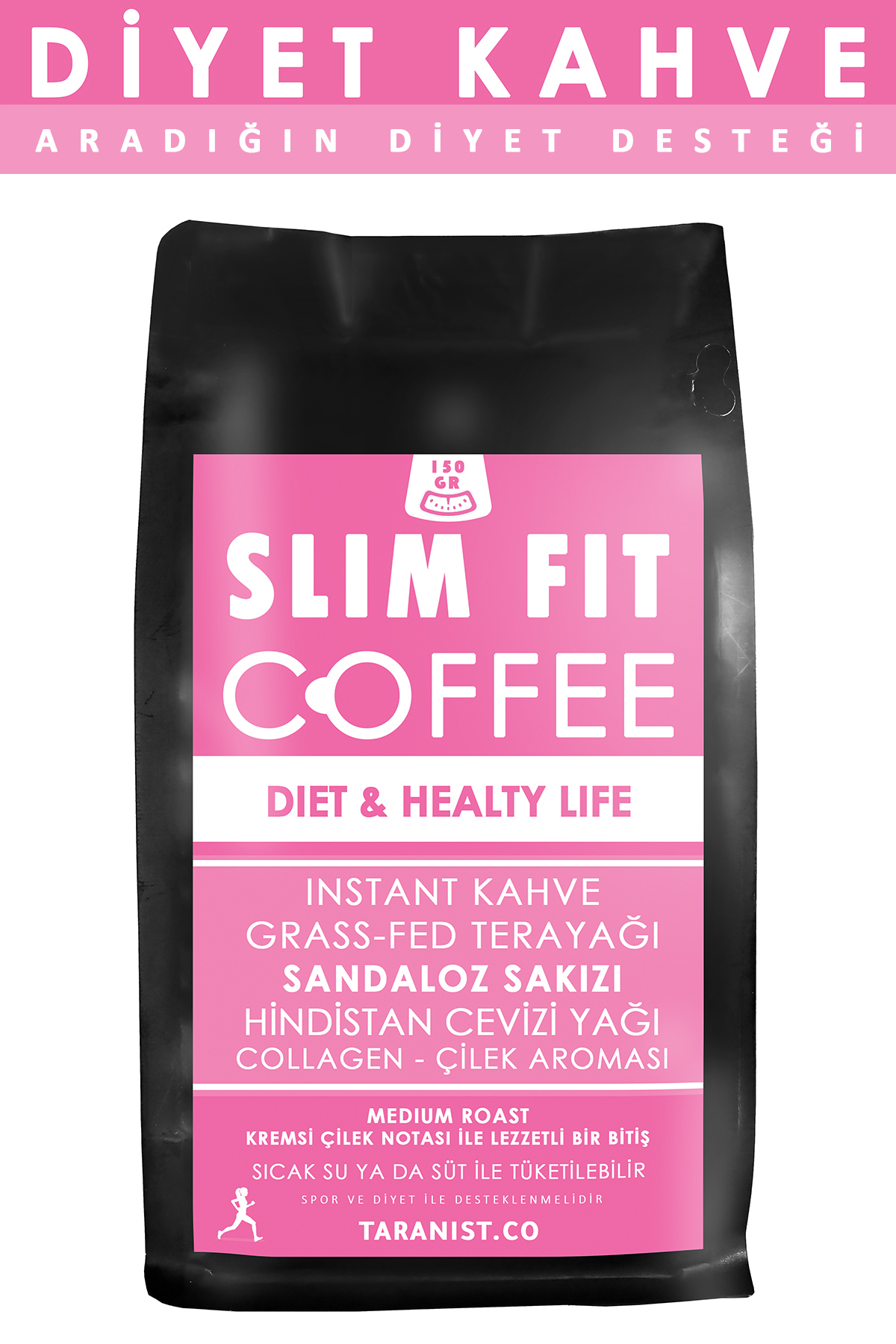 Taranist Slim Fit Coffee - Ketogenic Diet Coffee - Sandaloz Gum Collagen Coconut Oil - Strawberry