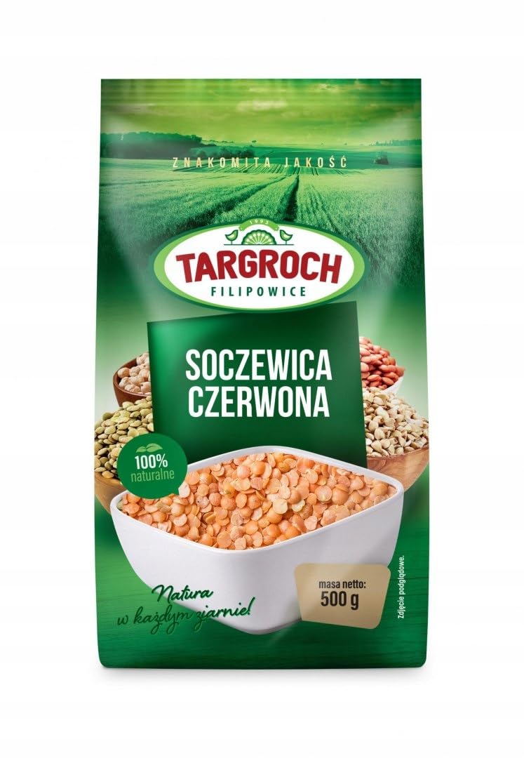 Red lentil granule 500g Targroch - a source of iron and fiber - supports weight loss - perfect for making soups Lentils contain many nutrients. It is a source of easily digestible proteins, B vitamins, including folic acid, as well as minerals such as potassium, magnesium, iron, copper, zinc and manganese. Due to the dietary fiber, it is also worth paying attention to lentils. It is worth including it in your daily diet for its richness in fiber, complex carbohydrates and vitamins and minerals. In addition to the health-promoting aspects, it also has more practical advantages: it is cheap, easy to prepare and good for starting culinary experiments with legumes. Soups in which they play the most important and only role taste delicious. Ground, it is a fantastic base for all types of fillings, but also for cutlets. Mixed with lemon, olive oil and other herbs, it makes delicious sandwich spreads with multiple flavors. You can make delicious pâtés from lentils. It can be used to make filling for stuffed cabbage, croquettes or dumplings. Cooked and cooled, it goes perfectly with various salads. COMPONENTS Red lentil granules (halves) Net weight: 500g The nutritional value of the product in 100 g: Energy value: 1231 kJ 344 kcal Fat: 1.1 g - of which saturated fatty acids: 0.2 g Carbohydrates: 29.6 g - of which sugars: 2 g Fiber: 30.5 g Protein: 25.8 g Salt: 0.02 g ALLERGENIC INFORMATION The product may contain: sesame, almonds, gluten, various nuts. RECOMMENDED STORAGE Store in a dry and cool place in a tightly closed container.Linzen met rode granen 500g Targroch Rode linzen korrel 500g Targroch - een bron van ijzer en vezels - ondersteunt gewichtsverlies - perfect voor het maken van soepen Linzen bevatten veel voedingsstoffen. Het is een bron van licht verteerbare eiwitten, B-vitamines, waaronder foliumzuur, evenals mineralen zoals kalium, magnesium, ijzer, koper, zink en mangaan. Vanwege de voedingsvezels is het ook de moeite waard om aandacht te besteden aan linzen. Het is de moeite waard om het in uw dagelijkse voeding op te nemen vanwege de rijkdom aan vezels, complexe koolhydraten en vitamines en mineralen. Naast de gezondheidsbevorderende aspecten heeft het ook meer praktische voordelen: het is goedkoop, gemakkelijk te bereiden en goed voor het starten van culinaire experimenten met peulvruchten. Soepen waarin zij de belangrijkste en enige rol spelen, smaken heerlijk. Gemalen, het is een fantastische basis voor alle soorten vullingen, maar ook voor schnitzels. Gemengd met citroen, olijfolie en andere kruiden, maakt het heerlijke sandwichspreads met meerdere smaken. Van linzen kun je heerlijke patés maken. Het kan worden gebruikt om vulling te maken voor gevulde kool, kroketten of dumplings. Gekookt en afgekoeld past het perfect bij verschillende salades. COMPONENTEN Rode linzenkorrels (helften) Netto gewicht: 500 g De voedingswaarde van het product in 100 g: Energiewaarde: 1231 kJ 344 kcal Vet: 1,1 g - waarvan verzadigde vetzuren: 0,2 g Koolhydraten: 29,6 g - waarvan suikers: 2 g Vezel: 30,5 g Eiwit: 25,8 g Zout: 0,02 g ALLERGENE INFORMATIE Het product kan het volgende bevatten: sesam, amandelen, gluten, verschillende noten. AANBEVOLEN OPSLAG Bewaar op een droge en koele plaats in een goed gesloten container.