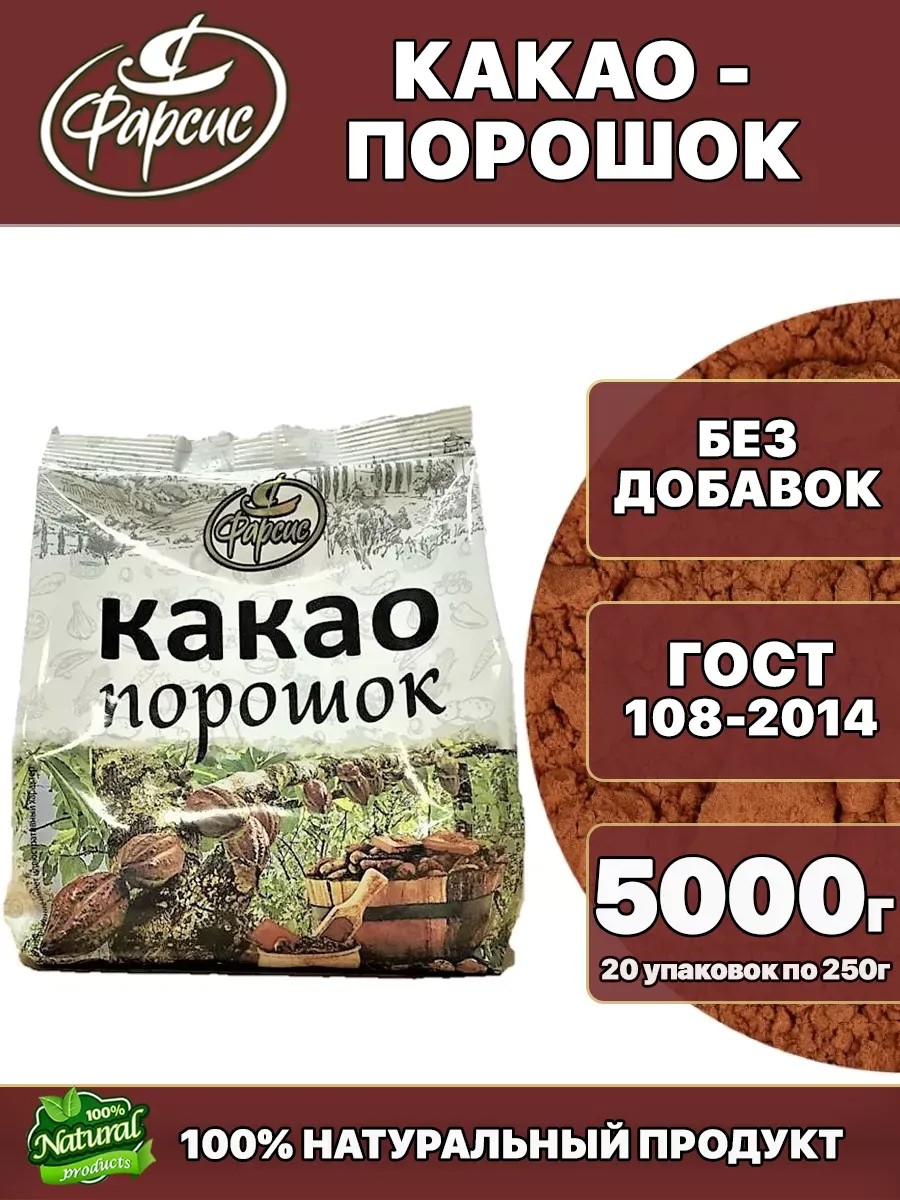Какао-порошок натуральный 5000 грамм (20 уп. по 250гр.)
