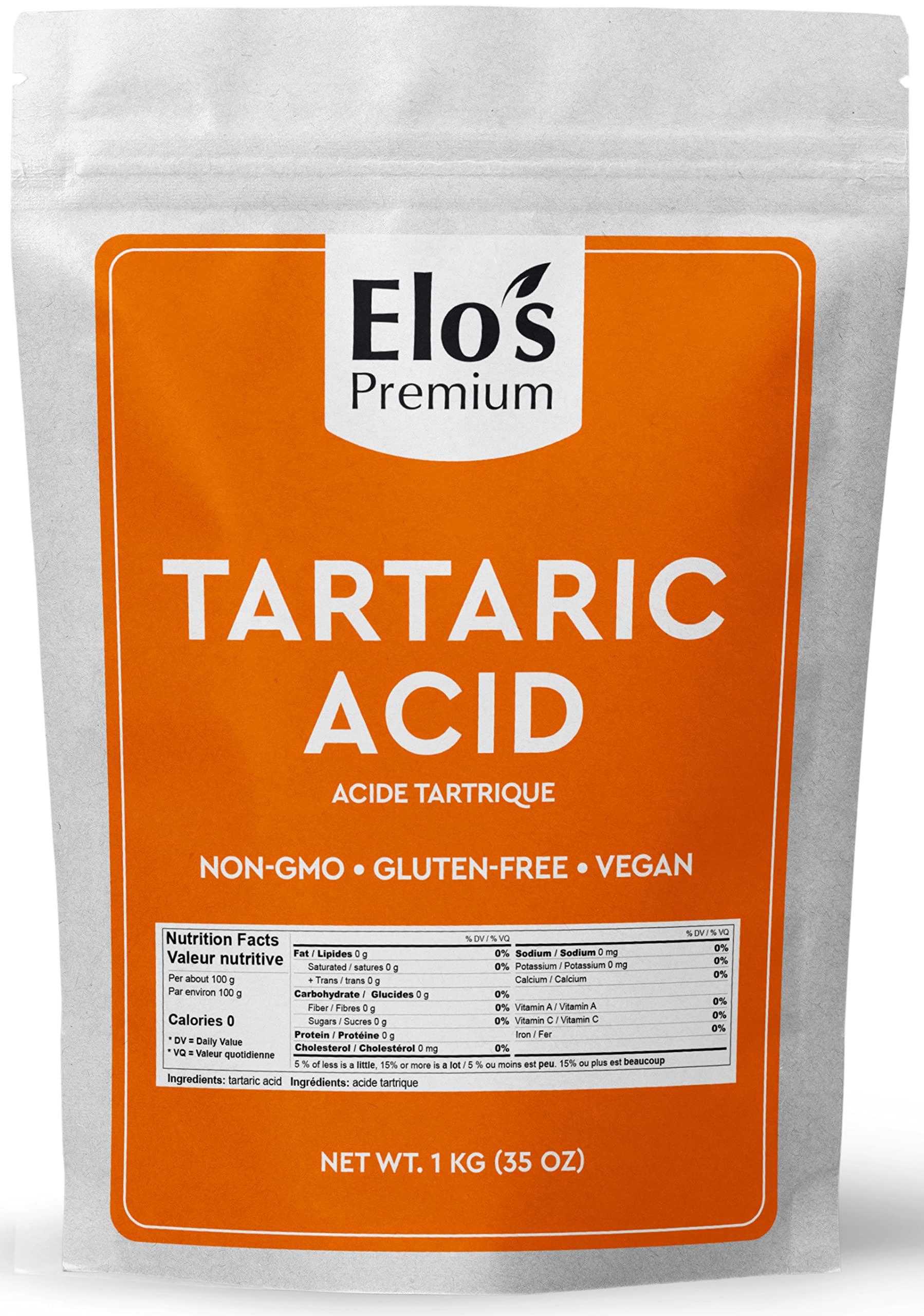 Tartaric acid (1kg 2.2lb) by Elo s Premium |100% All-Natural Food Grade Food Additive & Antioxidant| Packed In Canada| Non-GMO Kosher and Halal Friendly Gluten Free| Used As An Acidulant In Grape/Lime Drinks Gelatin Desserts Jams Wine Sour Candy and More