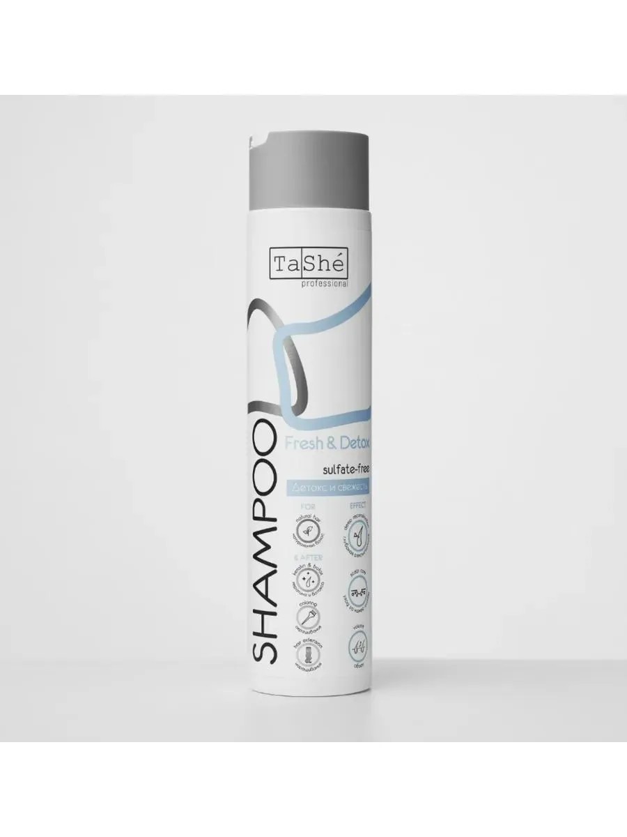 Бессульфатный шампунь Tashe Fresh & Detox — это мягкое, но эффективное очищение волос и кожи головы с эффектом детокса. Идеально подходит для использования после процедур ботокса, кератина и восстановления, а также в паре с кондиционером из той же серии для усиления эффекта. Формула на основе мягких ПАВ, аминокислот и растительных экстрактов глубоко очищает, восстанавливает структуру повреждённых волос, нормализует состояние кожи головы и придаёт волосам свежесть, лёгкость и естественный объём. Экстракт розмарина и ментол освежают, стимулируют микроциркуляцию, а аминокислоты питают и укрепляют волосяные луковицы, помогая продлить эффект салонного ухода.
