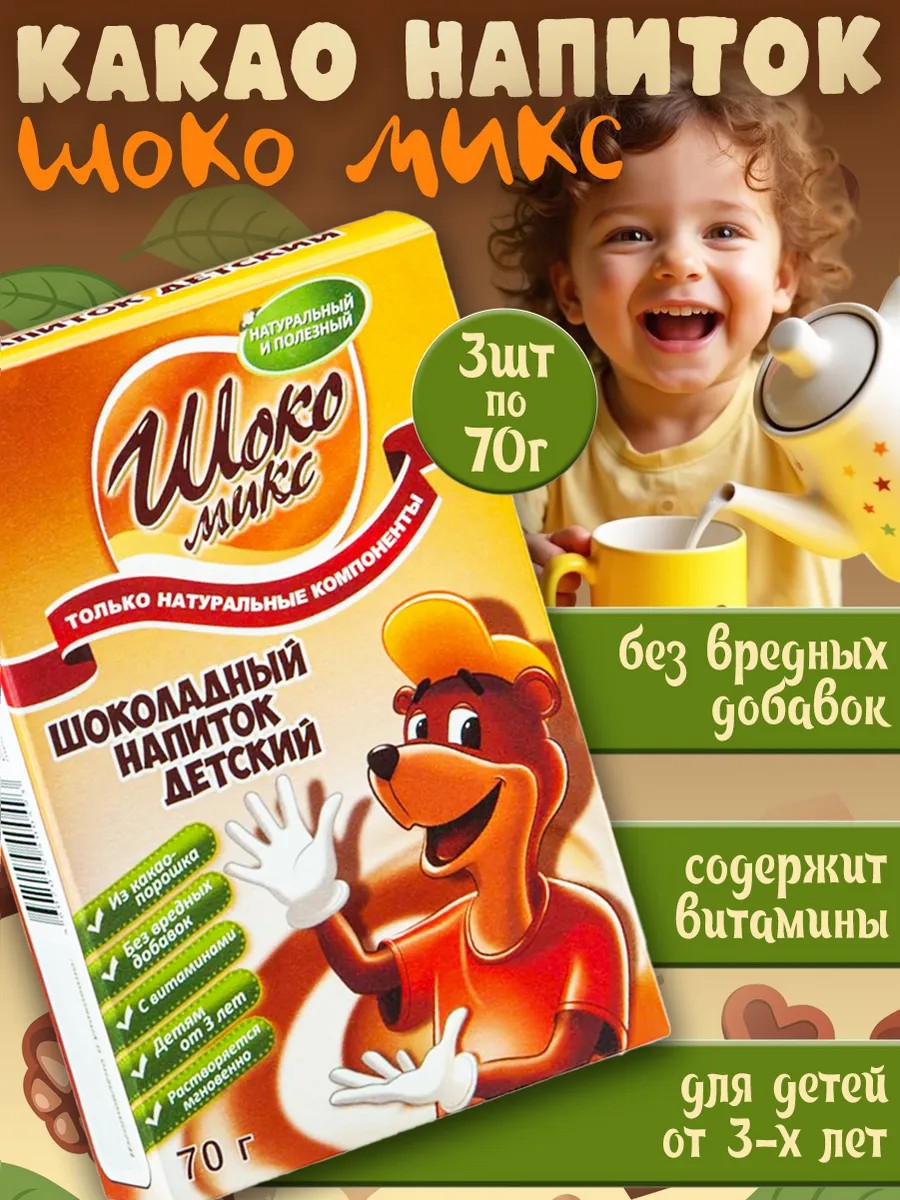| Комплектация | Шоколадный напиток Шокомикс Детский 3 шт по 70 гр |