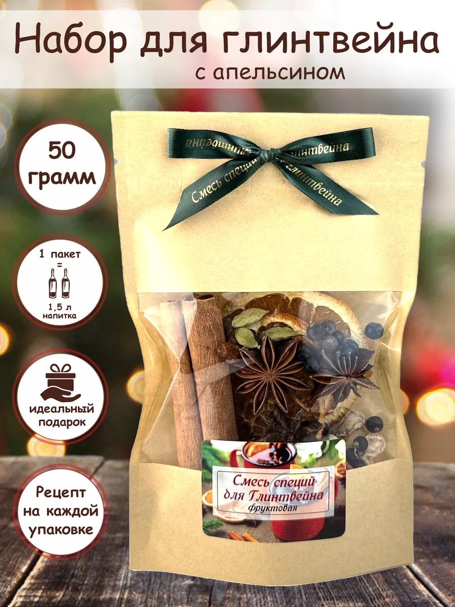 The Fruit Mulled Wine Set from Zavod Vkusa is the perfect choice for lovers of this classic drink at home. It includes natural whole spices such as star anise, cloves, cinnamon, ginger root, nutmeg, cardamom, juniper berries, as well as dried apples, oranges, and raisins, which will add a unique fruity flavor to your mulled wine. This set will allow you to create a drink that is perfect for festive evenings or simply as a cozy addition to table conversation. All spices are presented whole, preserving their aroma and flavor at their best. By choosing the Fruit Mulled Wine Set from Zavod Vkusa, you are ensuring not only a delicious but also a healthy treat, as the use of natural ingredients makes this drink especially healthy.