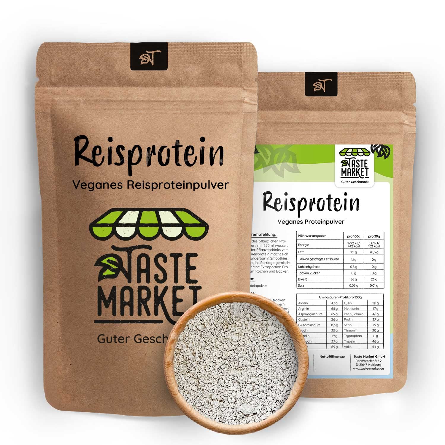 Rice protein powder is made from whole grain rice. The entire rice grain, including the hull and germ, is used, as this contains the highest proportion of protein. The grains are then germinated, fermented, and filtered until only pure protein powder remains. Our rice protein powder has a protein content of over 80 and is purely plant-based, unlike whey protein. It is therefore ideal for vegan and vegetarian diets and suitable for people with lactose intolerance. Furthermore, rice protein is low in carbohydrates compared to rice itself. Whether to support athletic goals or simply for an extra serving of protein, the neutral-tasting powder is perfect for preparing protein shakes or smoothies. We recommend mixing approximately 30g of plant-based protein powder with 250ml of water, milk, or a plant-based beverage. You can also mix rice protein into cottage cheese, yogurt, and porridge, or make delicious protein bombs when cooking and baking. Our rice protein has no added sugar if you prefer something sweeter, you can use sweeteners such as honey, agave juice, or maple syrup. Ingredients: Rice protein powder. Directions for use: Approximately mix 30g of plant-based protein powder with 250ml of water, milk, or plant-based milk. Rice protein is also perfect for smoothies, yogurt, porridge, or as an extra protein boost for cooking and baking. INGREDIENTS Rice protein powder DIRECTIONS Approximately mix 30g of plant-based protein powder with 250ml of water, milk, or plant-based milk. Rice protein is also wonderful in smoothies, yogurt, mixed into porridge, or as an extra source of protein for baking and cooking. SAFETY WARNING Store in a cool, dry place away from light. May contain traces of mustard, milk, peanuts, tree nuts, eggs, and wheat. Nutritional values, text descriptions, or other representations may differ from the actual product delivered. This product is sold in accordance with food legislation requirements. Other applications will not be considered by us. These analytical values are subject to the usual biological fluctuations of natural products. See moreYour order – freshly packaged: Immediately after you place your order, our products are hand-bottled in our own button factory. We place great importance on high quality and hygiene standards. Your goods are delivered in a convenient resealable kraft paper bag and shipped via DHL. ? Button Market – Your marketplace for great taste! We offer high-quality products from around the world, including organic options. And also: each of our products is available in many different packaging sizes – from small 100g sample packs, over 1kg and 5kg bags, to carrier bags, we have the right size for everyone. Do you have any questions about our products? Feel free to contact our customer service. Whether to support athletic goals or simply for an extra serving of protein, the neutral-tasting powder makes it easy to prepare wonderful protein drinks or smoothies. We recommend mixing approximately 30g of plant-based protein powder with 250ml of water, milk, or plant-based milk. You can also mix rice protein into cottage cheese, yogurt, and porridge, or make delicious protein bombs while baking and cooking. For the production of rice protein, the entire rice grain, including the husk and germ, is used, as this contains most of the protein. The granules are then germinated, fermented, and filtered until only pure protein powder remains. 10 x 500g Rice Protein 100 Natural No Additives Non-GMO Sugar-Free Made from Whole Grain Rice. Our rice protein powder has a protein content of over 80 and is purely plant-based, unlike whey protein. Therefore, it is ideal for inclusion in vegan and vegetarian diets and suitable for people suffering from lactose intolerance.10 x 500 g de poudre de protéines de riz 86 de protéines vegan poudre de protéines végétales poudre de protéineDESCRIPTION DU PRODUIT DESCRIPTION DU PRODUIT La poudre de protéines de riz est obtenue à partir de riz complet. Pour ce faire, tout le grain de riz avec la coquille et le germe est utilisé, car il y a la plus grande partie de protéines. Les grains sont ensuite amenés à germiner, fermentés et ensuite filtrés jusqu'à ce qu'une seule poudre de protéines pure soit restée. Notre poudre de protéines de riz a une teneur en protéines de plus de 80 et est purement végétale, contrairement aux protéines de Whey. Il est donc idéal à intégrer dans l'alimentation végétalienne et végétarienne et convient aux personnes souffrant d'intolérance au lactose. En outre, la protéine de riz est faible en glucides par rapport au riz lui-même. Que ce soit pour soutenir des objectifs sportifs ou simplement pour une portion supplémentaire de protéines, la poudre neutre au goût permet de préparer merveilleusement des shakes protéinés ou des smoothies. Nous recommandons environ Mélanger 30 g de poudre de protéines végétales avec 250 ml d'eau, de lait ou de boisson végétale. Vous pouvez également mélanger la protéine de riz dans le fromage blanc, les yaourts et les porridges ou faire de bonnes bombes de protéines lors de la cuisine et de la pâtisserie. Notre protéine de riz n'a pas été ajoutée de sucre, si vous manquez de sucré, vous pouvez utiliser des édulcorants tels que le miel, le jus d'agave ou le sirop d'érable. Ingrédients : Poudre de protéines de riz. Conseils d'utilisation : Env. Mélanger 30 g de poudre de protéines végétales avec 250 ml d'eau, de lait ou de boisson végétale. La protéine de riz est également parfaite pour les smoothies, les yaourts, les porridge ou pour une portion supplémentaire de protéines pour la cuisine et la pâtisserie. INGRÉDIENTS Poudre de protéines de riz MODE D'EMPLOI Environ Mélanger 30 g de poudre de protéine végétale avec 250 ml d'eau, de lait ou de boisson végétale. Les protéines de riz sont également merveilleuses dans les smoothies, les yaourts, mélangés à la bouillie ou pour une portion sup