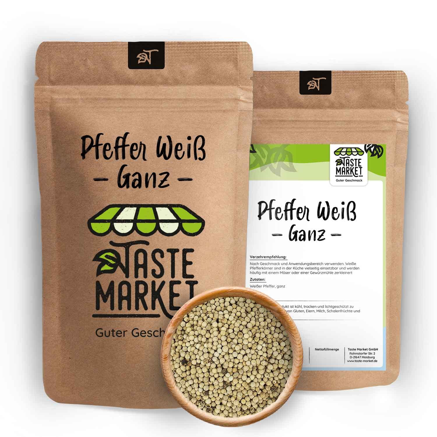 : Unlike black pepper, white peppercorns are obtained solely from the dried seeds of the fully ripened berry. Due to the longer maturation process, the pepper is less aromatic but much sharper than black pepper. It is ideal for seasoning meat, marinades, salad dressings, soups, and much more. The best flavor of white peppercorns is brought out when they are freshly ground or crushed with a mortar and pestle. Ingredients: Whole white peppercorns. Usage Instructions: Use according to taste and intended use. White peppercorns are versatile in the kitchen and are often ground with a grinder or spice mill. Notes: Store in a cool, dry place away from light. May contain traces of mustard, milk, peanuts, tree nuts, eggs, and wheat. Nutritional values, text descriptions, or other representations may vary slightly from the actual product. This product is sold in accordance with food legislation. We do not verify other applications. These analytical values are subject to the normal biological fluctuations of natural products. INGREDIENTS Whole White Pepper200 g de poivre blanc entier, poivre blanc entier, grains de poivre, épices, framboisesDESCRIPTION DU PRODUIT DESCRIPTION DU PRODUIT Description du produit : contrairement au poivre noir, les grains de poivre blancs sont uniquement obtenus à partir du grain de graines séchées de la baie complètement mûrée. Grâce à la maturation plus longue, le poivre est moins aromatique, mais beaucoup plus aiguisé que le poivre noir. Il est idéal pour assaisonner la viande, les marinades, les vinaigrettes, les soupes et bien plus encore. Le meilleur goût des grains de poivre blanc est mis en valeur lorsqu'ils sont fraîchement moulus ou broyés avec un mortier. Ingrédients : Poivre blanc complet. Conseils d'utilisation : Utilisez selon les goûts et le champ d'application. Les grains de poivre blancs sont polyvalents dans la cuisine et sont souvent broyés avec un carotte ou un moulin à épices. Remarques : Conserver dans un endroit frais, sec et à l'abri de la lumière. Peut contenir des traces de moutarde, lait, cacahuètes, fruits à coque, œufs et blé. Les valeurs nutritionnelles, les descriptions du texte ou d'autres représentations peuvent varier légèrement de la marchandise réelle. Ce produit est vendu sous les exigences de la législation alimentaire. Nous ne vérifions pas d'autres applications. Ces valeurs d'analyse sont soumises aux fluctuations biologiques habituelles des produits naturels. INGRÉDIENTS Poivre blanc complet