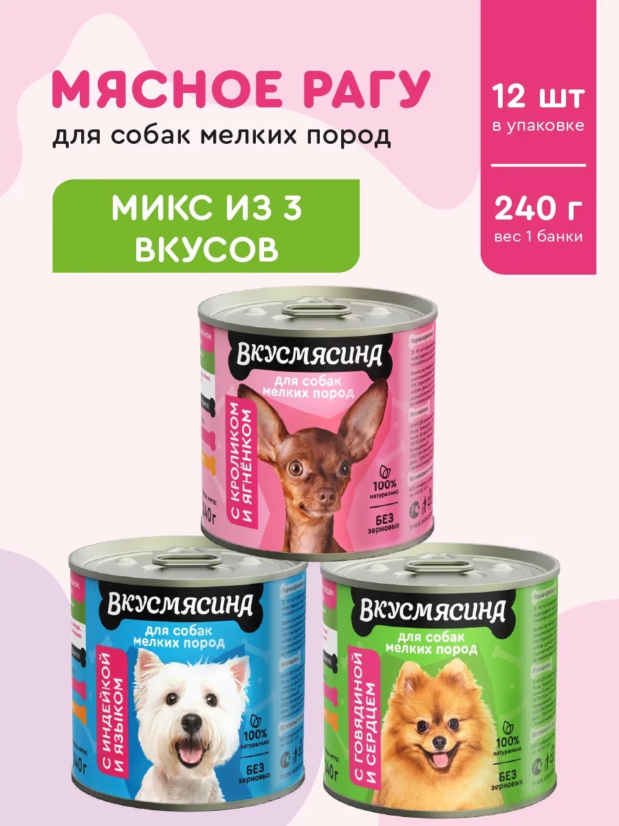 Вкусмясина Корм для собак влажный мелких пород Микс 3 вкуса 240 г 12 шт