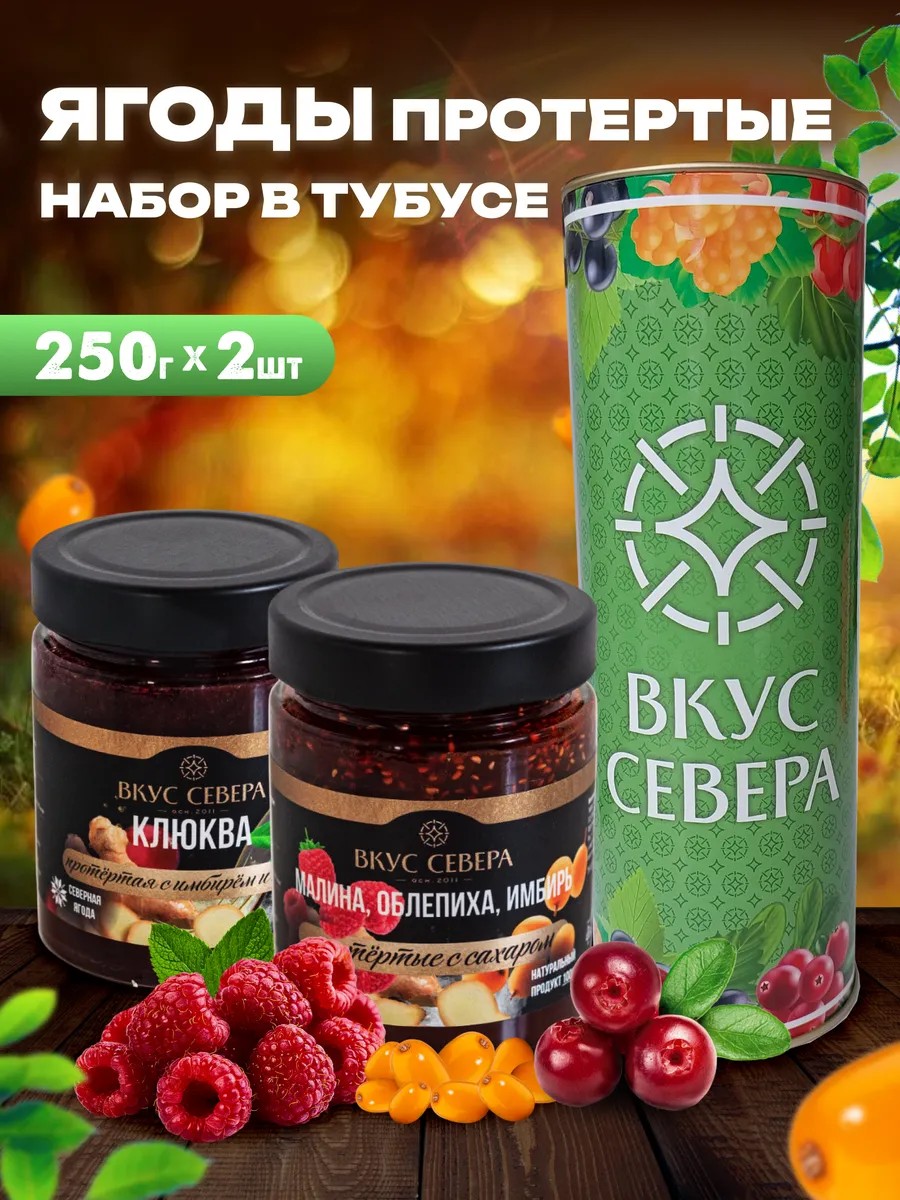 | Package Contents | Cranberries with ginger and honey - 1 can 250 grams; Raspberry, sea buckthorn, ginger with sugar - 1 jar 250 grams |