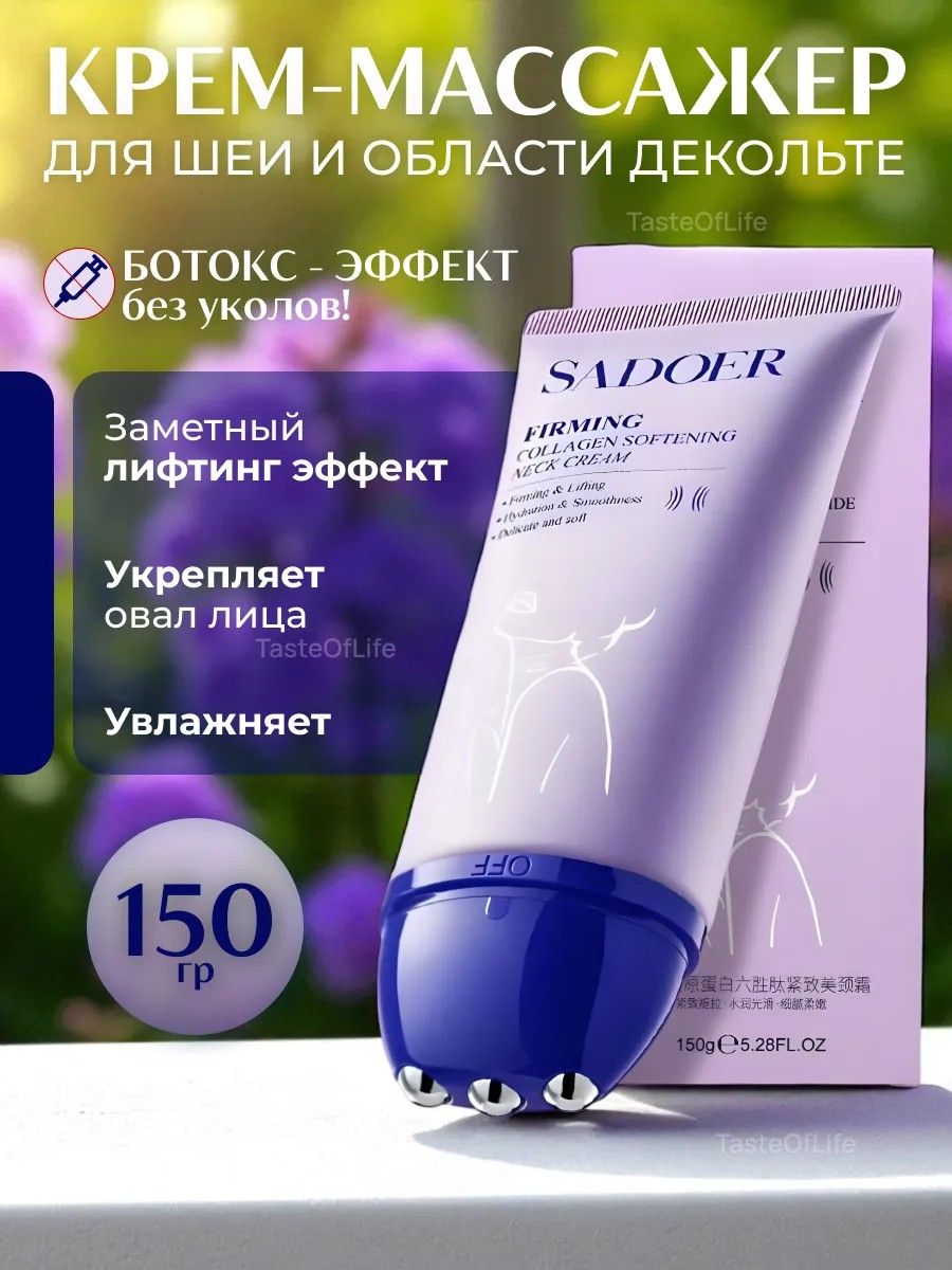 Омолаживающий подтягивающий крем для шеи и декольте с коллагеном, гексапептидом и гиалуроновой кислотой от Sadoer. Продукт с укрепляющей лифтинг формулой для антивозрастного ухода за кожей сокращает морщины, кожные заломы и тонкие линии, делает кожу упругой и подтянутой. Специальный массажный ролик усиливает действие и способствует глубокому проникновению средства, укрепляет линию шеи. Для особенной и нежной кожи увлажняющий омолаживающий крем с массажным аппликатором, контурная пластика лица - 3D массажер для лица, который корректирует возрастные изменения, избавит от второго подбородка и наполнит клетки кожи необходимыми веществами. Средство бандаж для овала лица с шелковистой текстурой и инновационной формулой стимулирует восстановительные процессы и заряжает энергией каждую клетку, отражает атаки свободных радикалов, укрепляет и подтягивает кожу. Крем роллер для массажа лица поможет укрепить линию шеи и контур лица и подарит удовольствие при использовании. Тщательно подобранная композиция крема дает подтягивающий, увлажняющий и питающий эффект. Обогащает кожу влагой и замедляет ее увядание. Разглаживающий лифтинг крем возвращает четкость контурам лица. Мгновенно появляется эффект подтяжки, который сохраняется в течение нескольких часов. Содержит увлажняющий комплекс — для глубокого увлажнения и питания. Питательное средство повышает упругость и эластичность кожи, моделирует более четкий контур. Косметическое уходовое средство для омолаживания уменьшает длину и глубину морщинок благодаря эффективному компоненту против старения — антиоксидантному комплексу, продукт изготовлен по корейской технологии. Подходит как уход крем для тела для проблемных зон. Также подходит для ежедневного применения как дневной и ночной anti age анти эйдж для всех типов кожи — сухой, жирной и комбинированной, в том числе для возрастной и чувствительной.