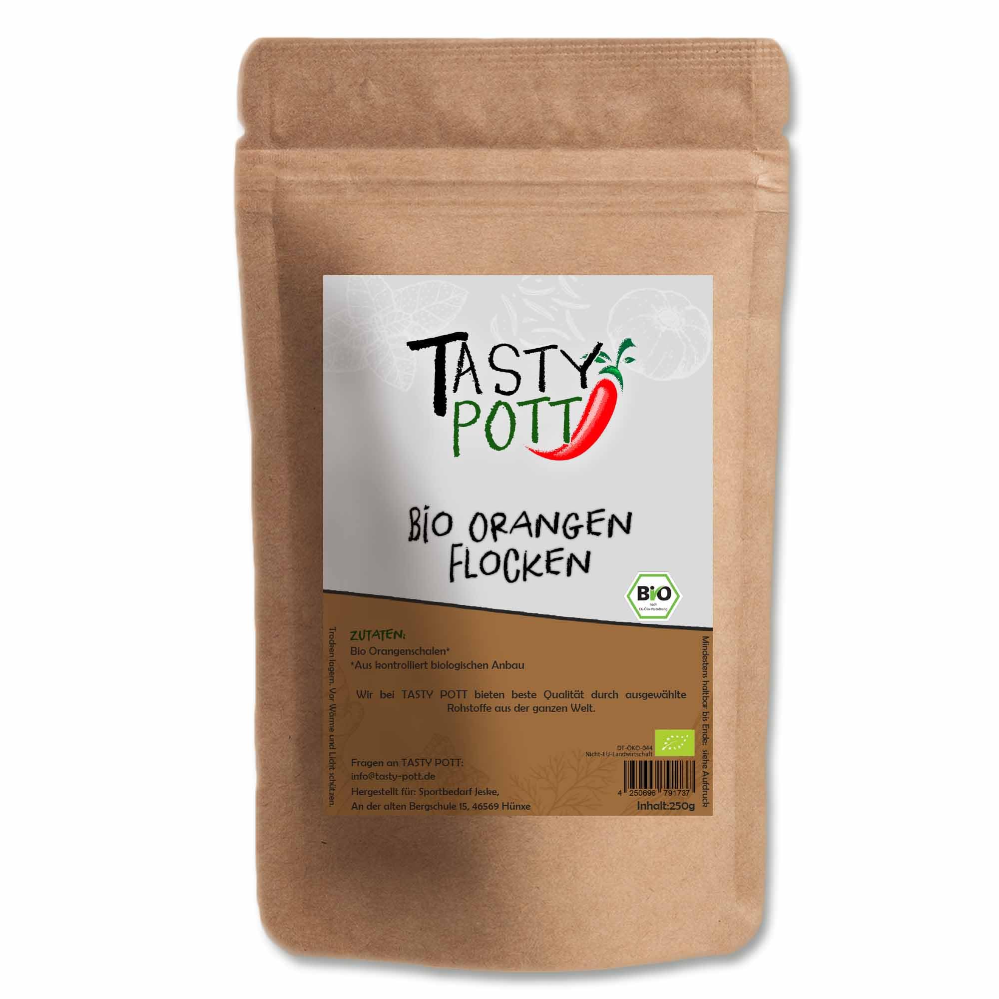 Tasty Pott Sachet de 250 g de flocons d'orange bio Cuisson Cuisine Flocons d'orange Qualité supérieure authentique Gâteau Muffins Muesli Paquet avantageux Sac de conservation