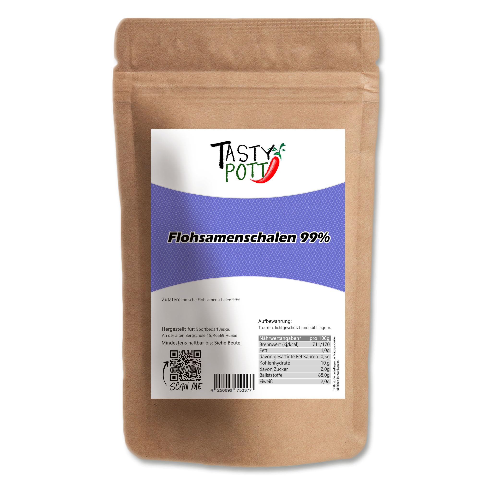 Tasty Pott Coquilles de psyllium de qualité supérieure - Pureté à 99 - Fibres - Nutrition végétalienne - Complément alimentaire - À base de psyllium - En sachet de 1000 g (3 x 1000 g) 3x1000g