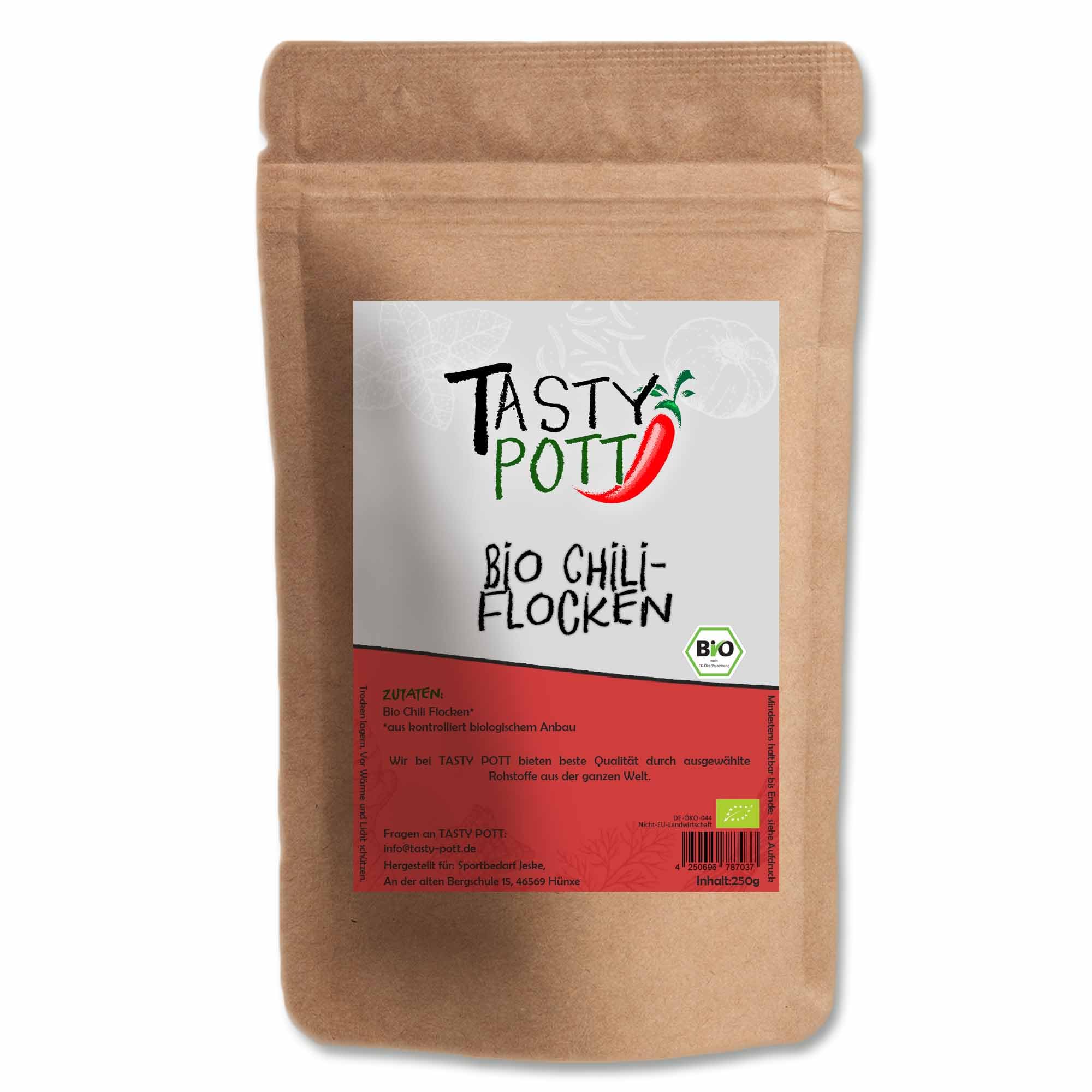 TASTY POTT Tasty Pott Organic Chili Flakes - 250g - Sharp and Spicy - Spices - Cooking - Marinade - Organic Quality - Refill Bag