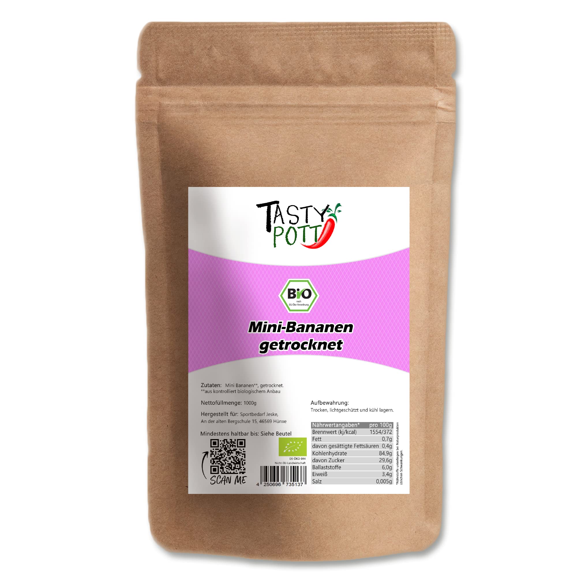 Tasty Pott Minibananes bio séchées I Fruits secs I Fruits secs I Fruits secs I Snack I Pour salade de fruits I Bébé Bananes I En sachet 1000 g