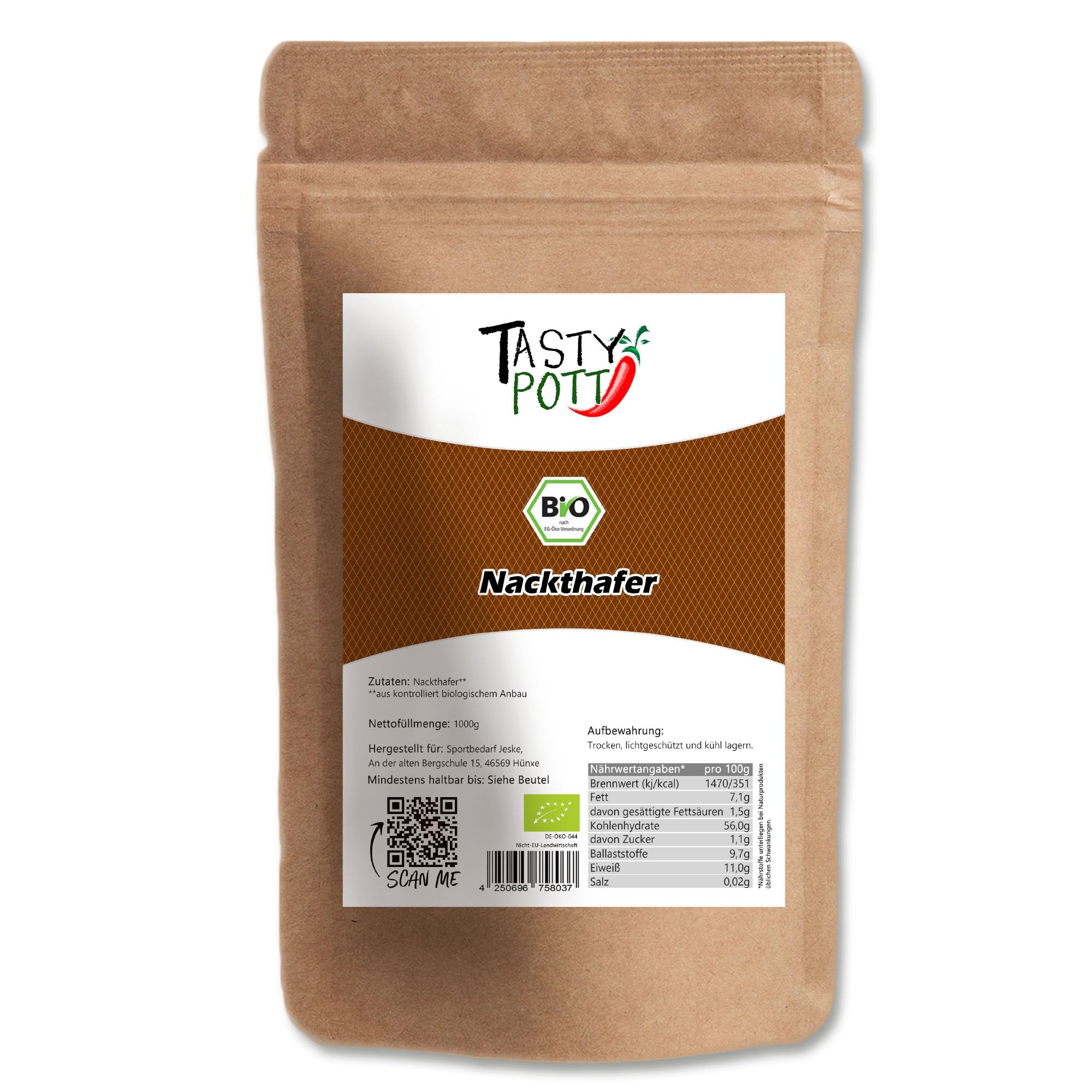 TASTY POTT Tasty Pott Organic Oats - Hullless - Vegan Nutrition - Oat Grains - For Cereals - Baking Bread - Organic Grains - Whole Grain Oats - 1000g Bag