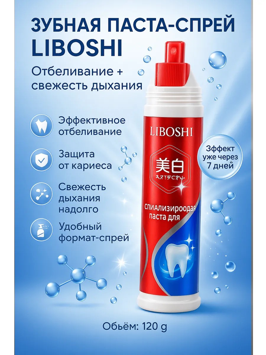 Отбеливающая зубная паста LIBOSHI (красная упаковка) – инновационное средство для бережного ухода за зубами и дёснами. Паста эффективно очищает эмаль от налёта, осветляет зубы, устраняет неприятный запах и обеспечивает свежее дыхание на весь день.