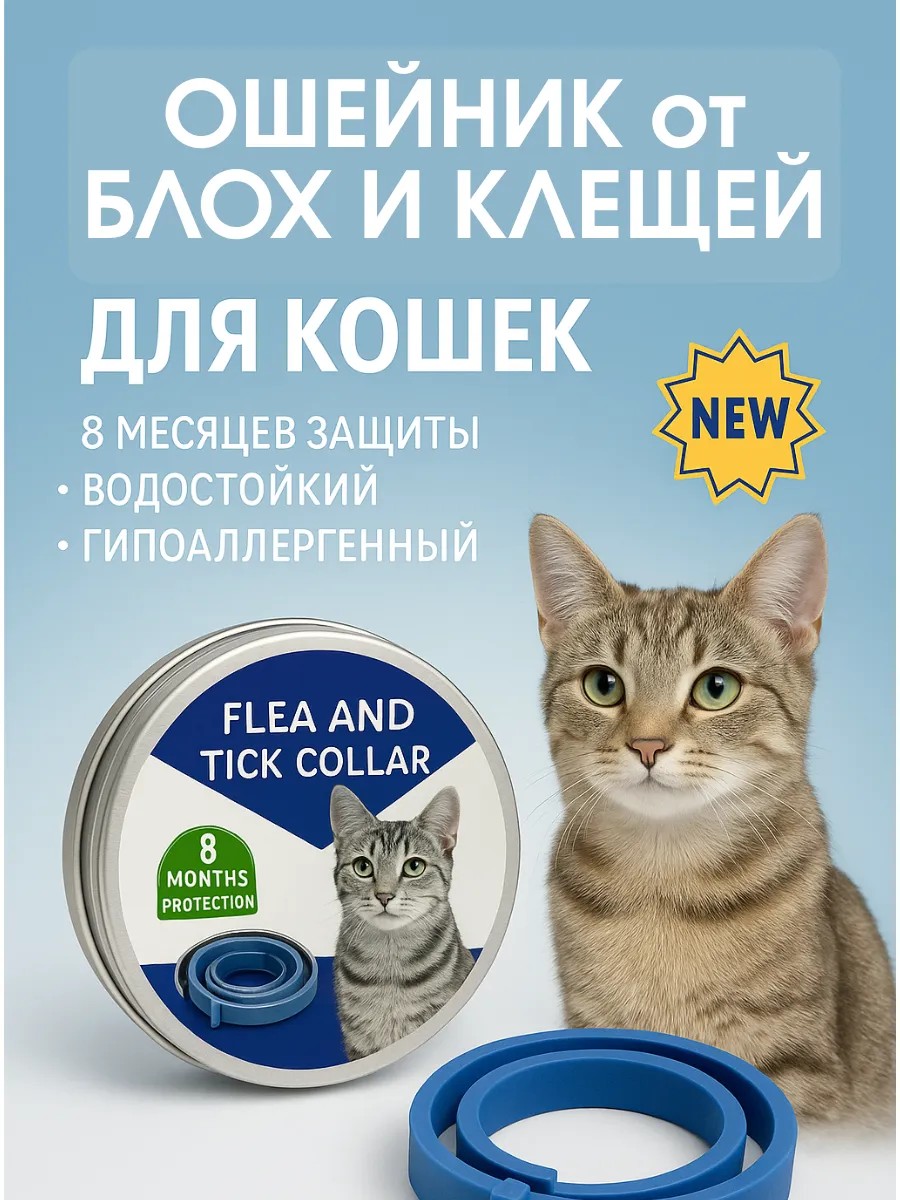 Закажите ошейник от блох и клещей для собак и кошек уже сегодня, чтобы подарить своему питомцу долгосрочную защиту и комфорт!